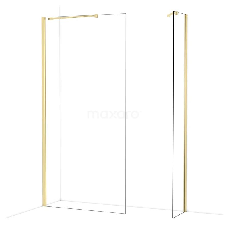 Diamond begehbare Dusche | 100x40 cm Glänzendes Hellgold 2 feste Wände