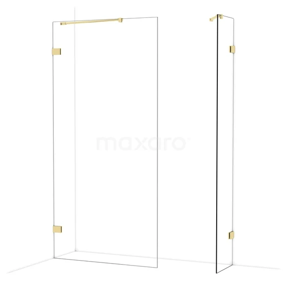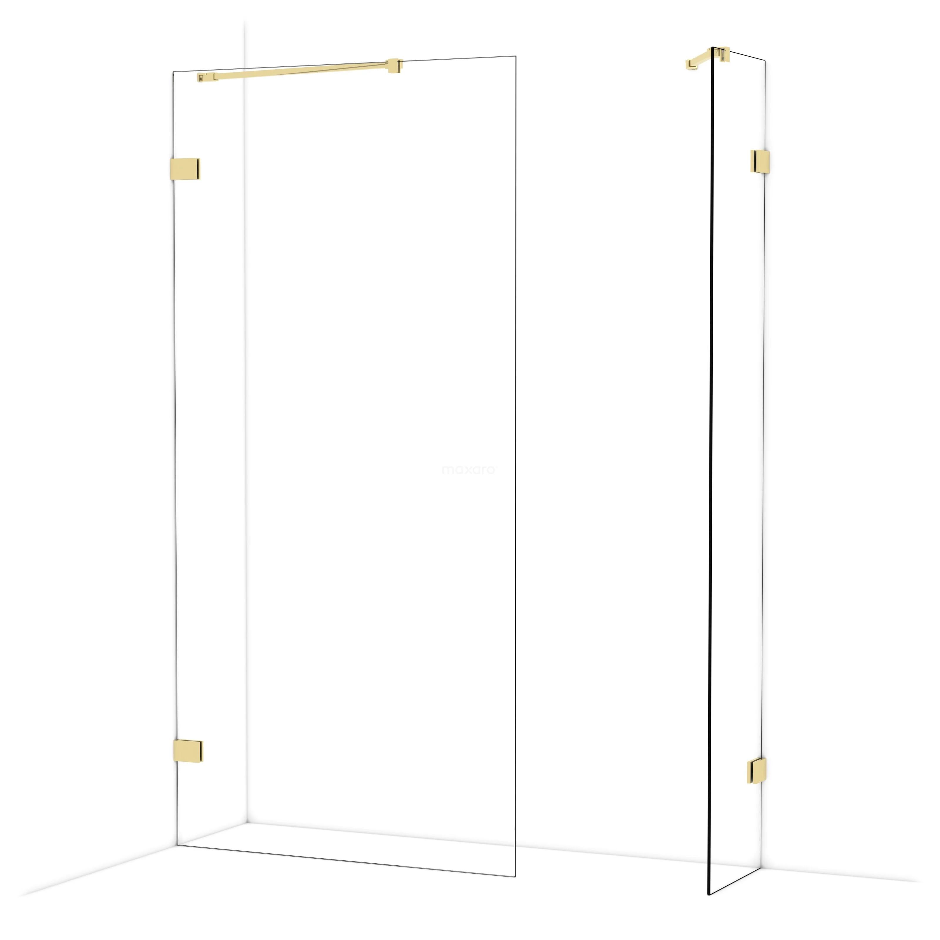Diamond begehbare Dusche | 100x40 cm Glänzendes Hellgold 2 feste Wände