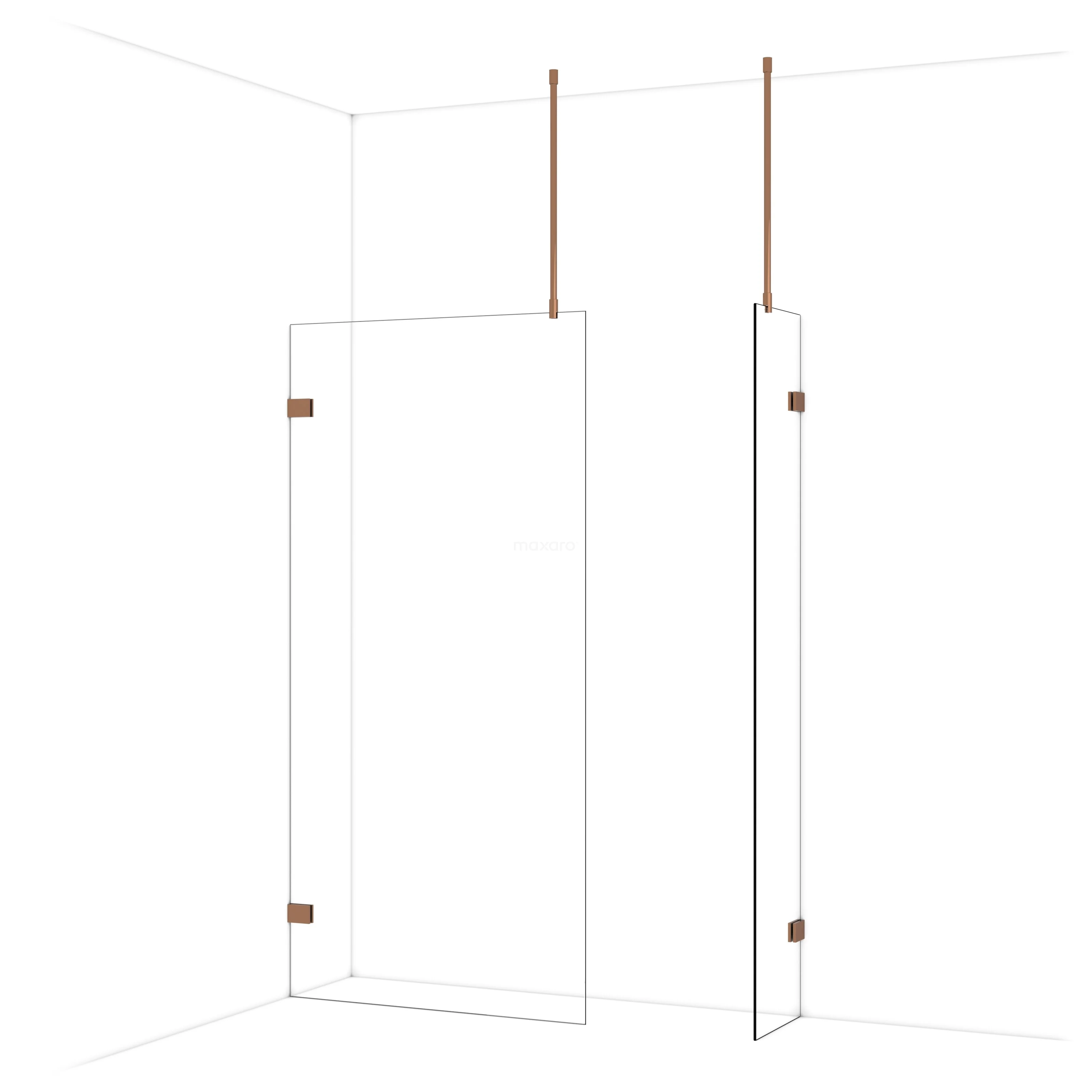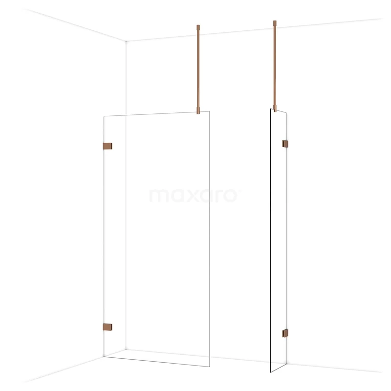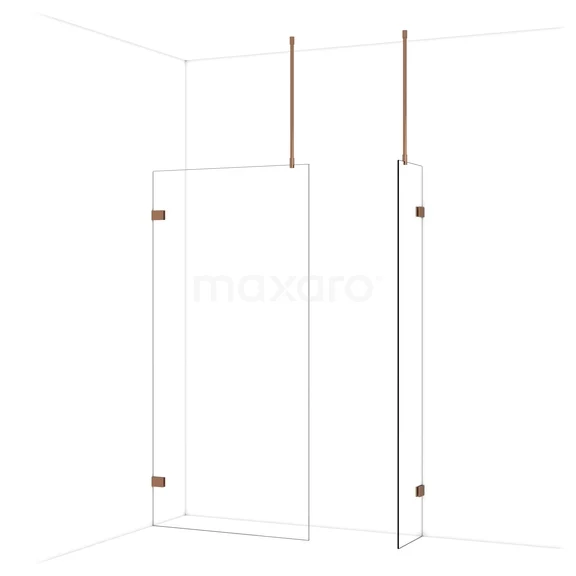 Diamond begehbare Dusche | 100x40 cm Glänzendes Kupfer 2 feste Wände