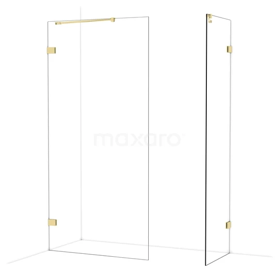 Diamond begehbare Dusche | 100x60 cm Glänzendes Hellgold 2 feste Wände
