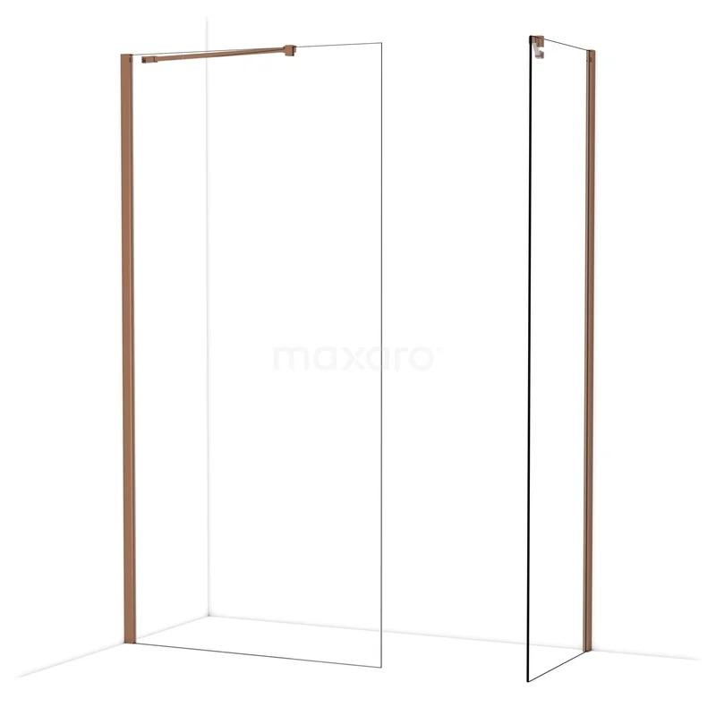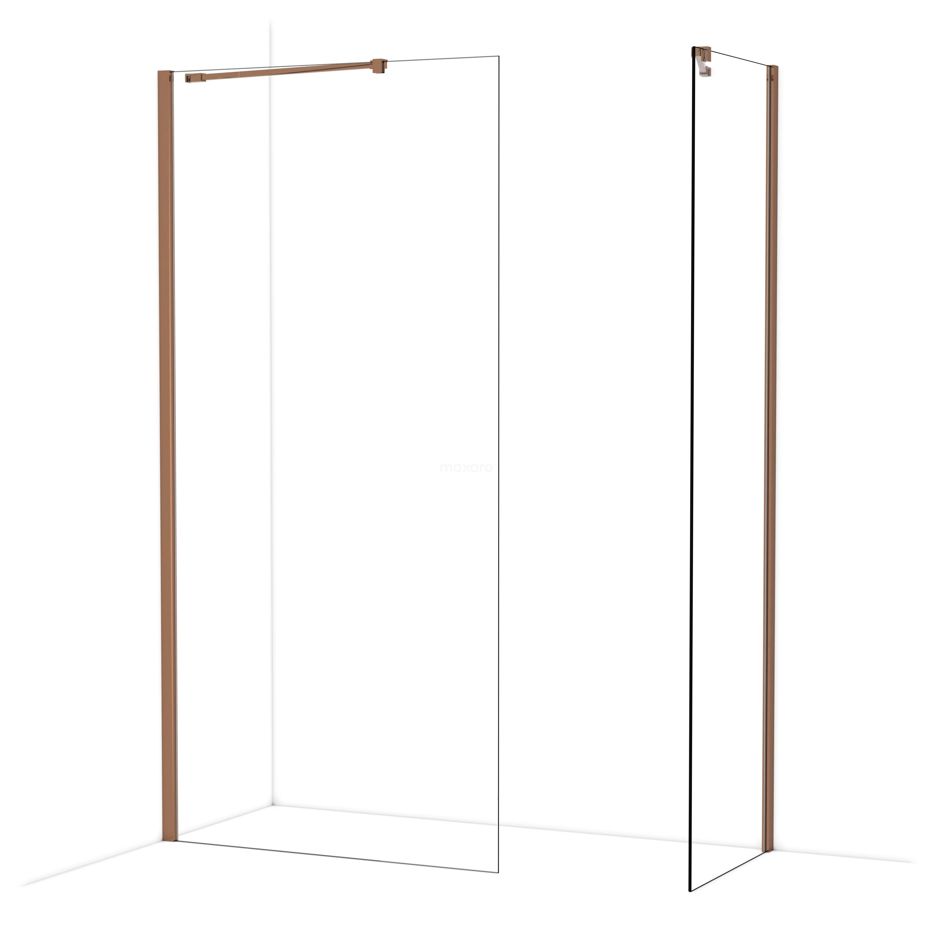 Diamond begehbare Dusche | 100x60 cm Glänzendes Kupfer 2 feste Wände