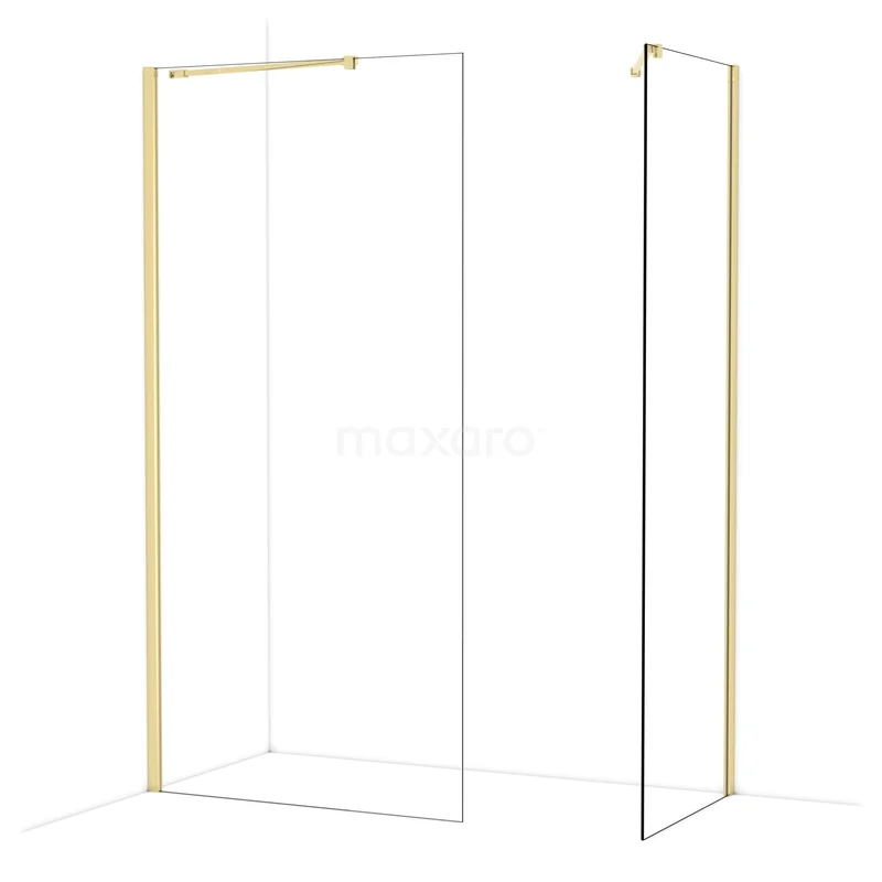 Diamond begehbare Dusche | 100x70 cm Glänzendes Hellgold 2 feste Wände
