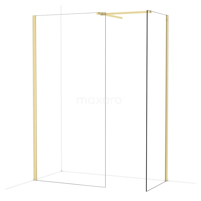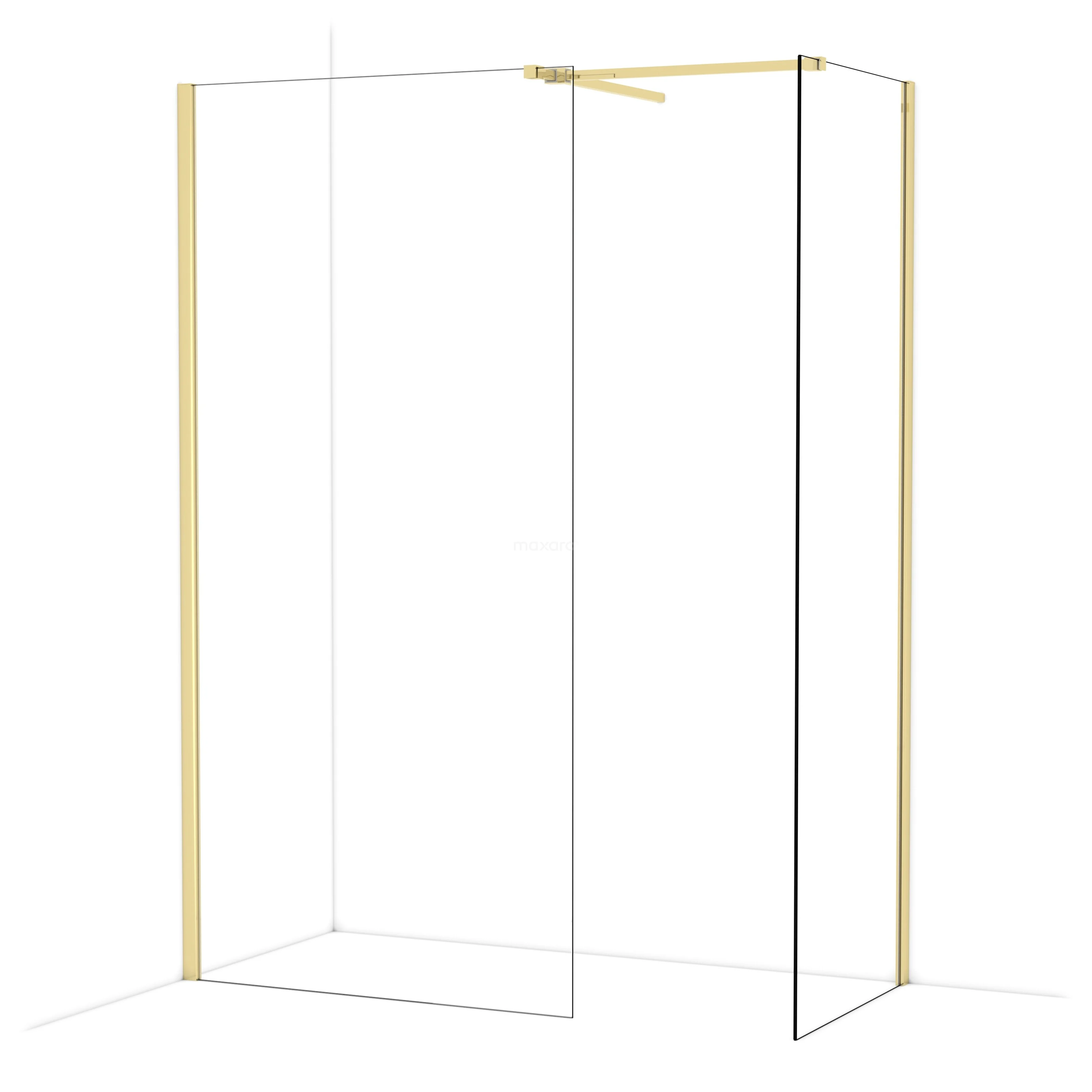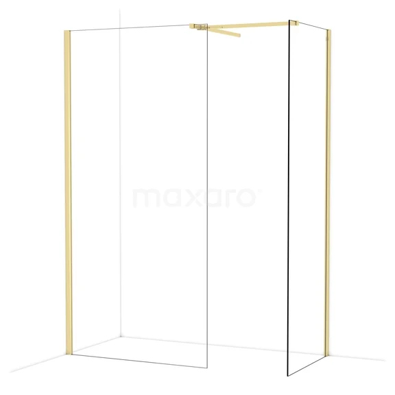 Diamond begehbare Dusche | 100x70 cm Glänzendes Hellgold 2 feste Wände