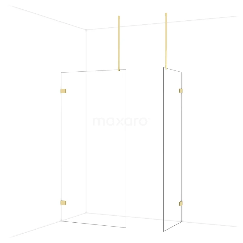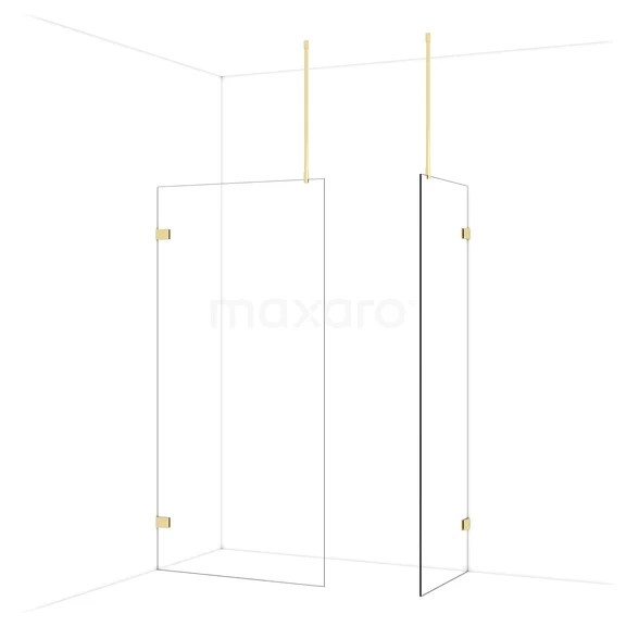 Diamond begehbare Dusche | 100x70 cm Glänzendes Hellgold 2 feste Wände