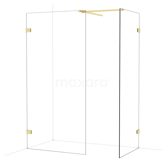Diamond begehbare Dusche | 100x80 cm Glänzendes Hellgold 2 feste Wände