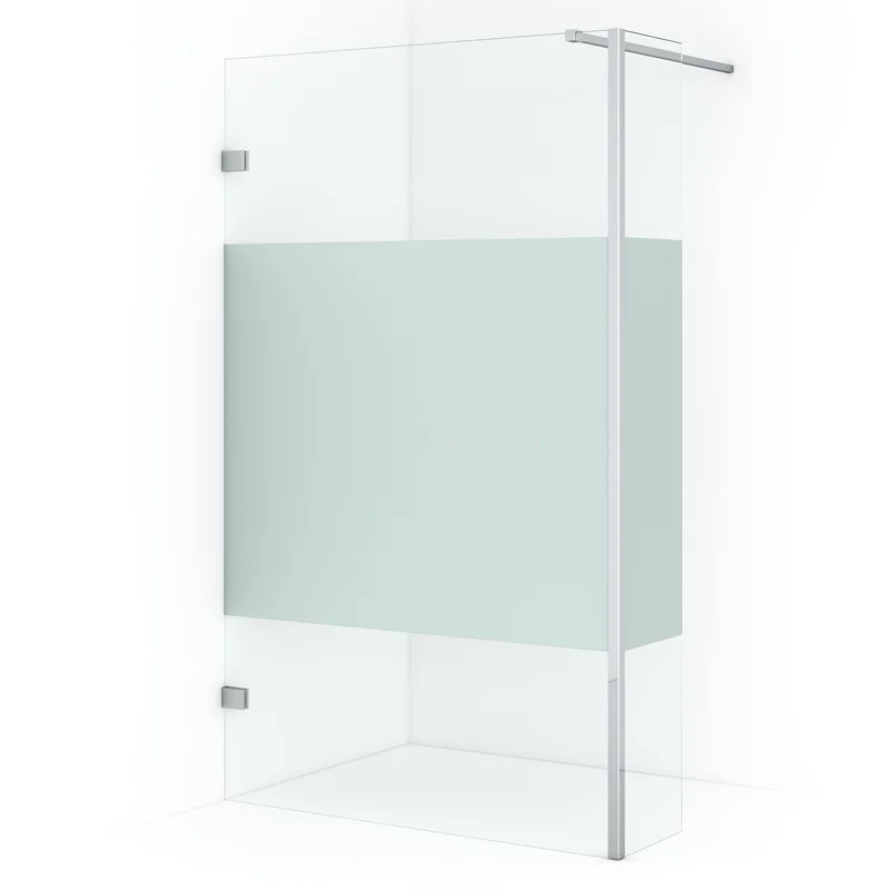 In der stilvollen begehbaren Dusche Diamond können Sie jeden Tag herrliche Duschsitzungen genießen. Sie hat ein zeitloses Chrom-Finish und verfügt über Klarglas mit einem mattierten Streifen für mehr Privatsphäre. Die Dusche ist verstellbar und lässt sich daher leicht anpassen. Die feste Wand hat eine Verstellbarkeit von 106,8 bis 107,1 cm, einschließlich des Glases und des Eckprofils. Die Seitenwand hat eine feste Größe von 28,1 cm, einschließlich des Eckprofils.