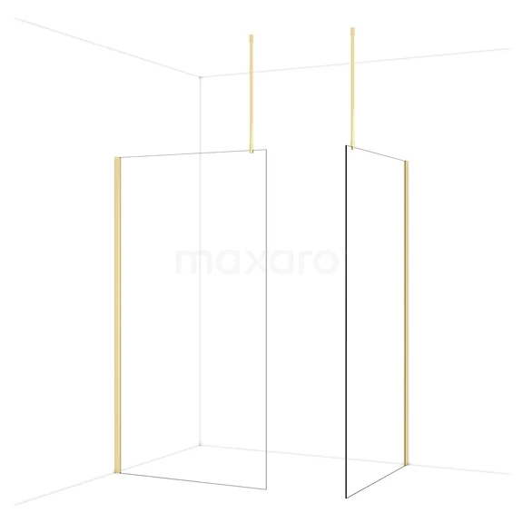 Diamond begehbare Dusche | 110x110 cm Glänzendes Hellgold 2 feste Wände