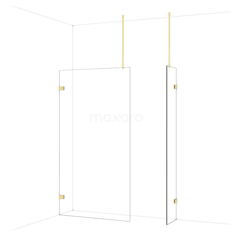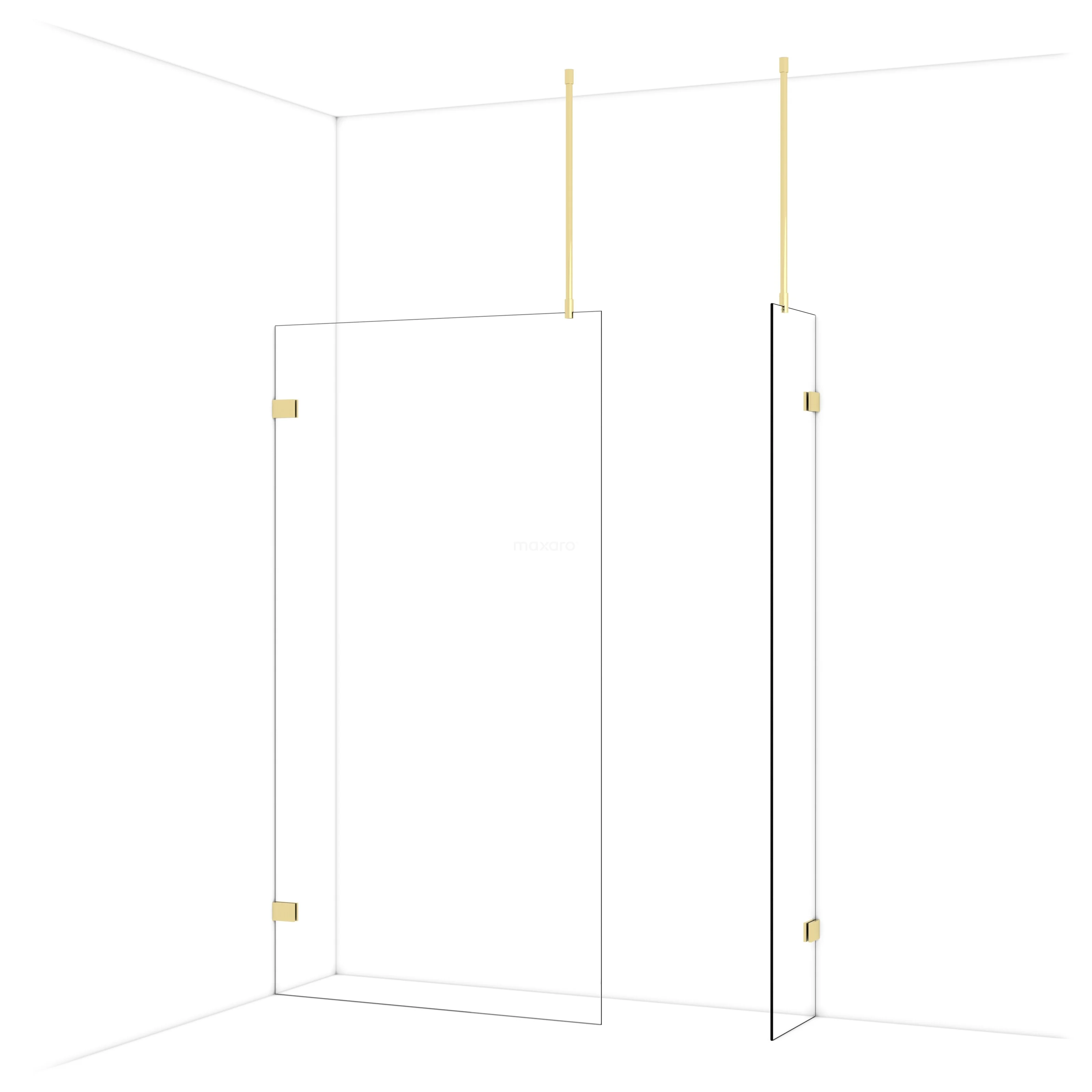 Diamond begehbare Dusche | 110x40 cm Glänzendes Hellgold 2 feste Wände