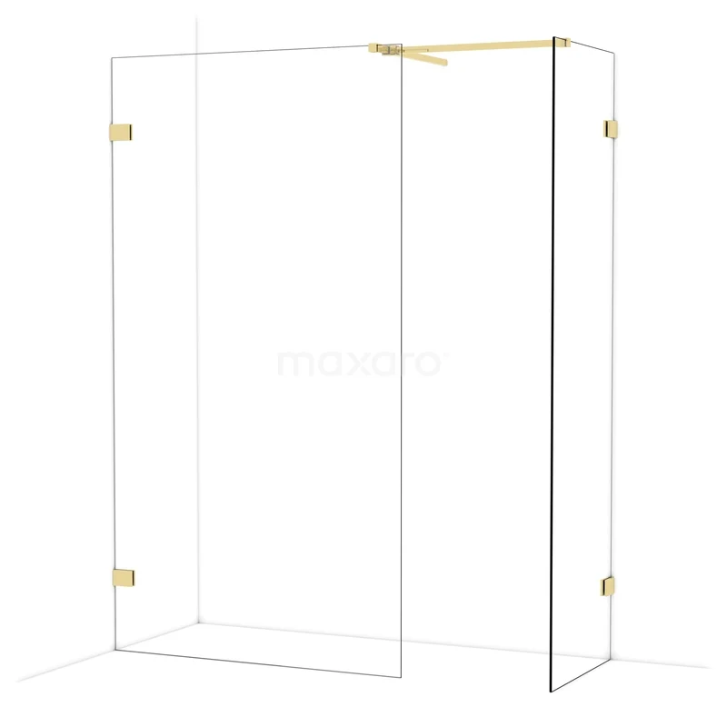 Diamond begehbare Dusche | 110x60 cm Glänzendes Hellgold 2 feste Wände