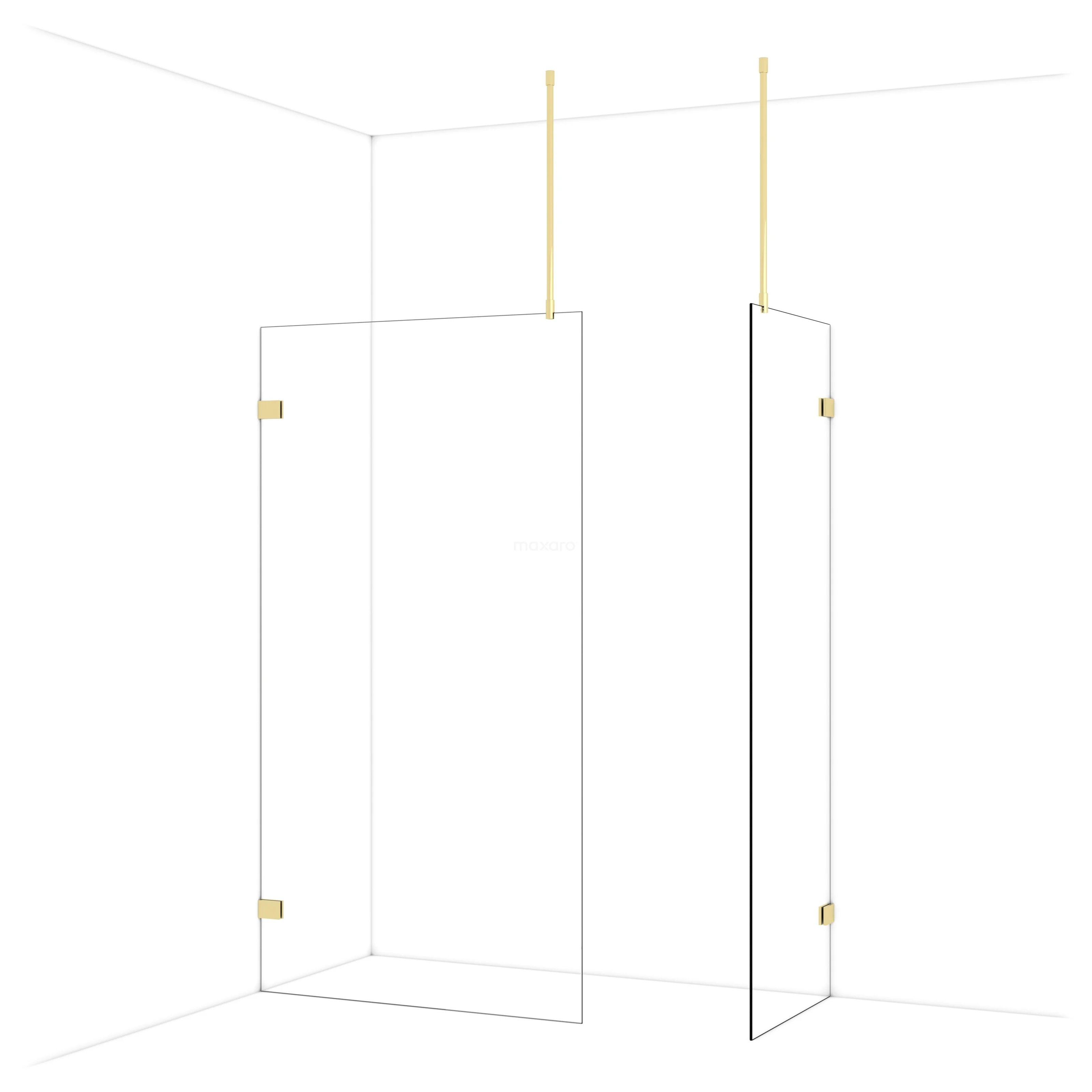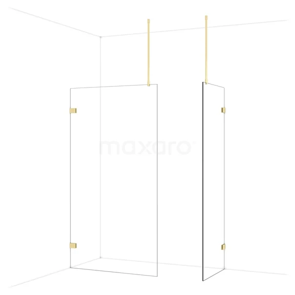 Diamond begehbare Dusche | 110x70 cm Glänzendes Hellgold 2 feste Wände