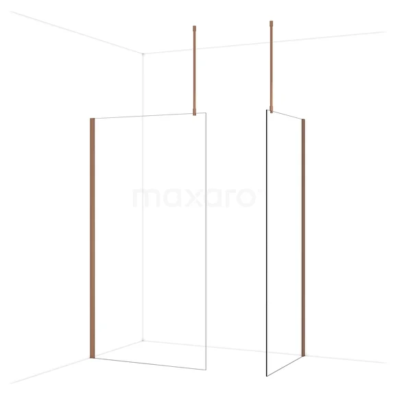 Diamond begehbare Dusche | 110x90 cm Glänzendes Kupfer 2 feste Wände
