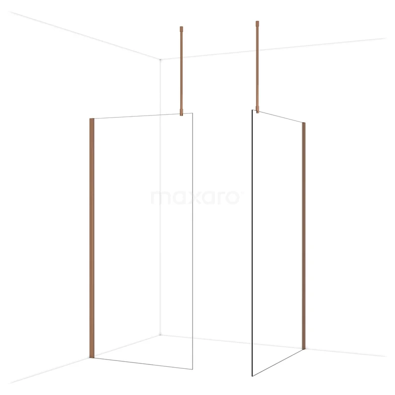 Diamond begehbare Dusche | 120x100 cm Glänzendes Kupfer 2 feste Wände