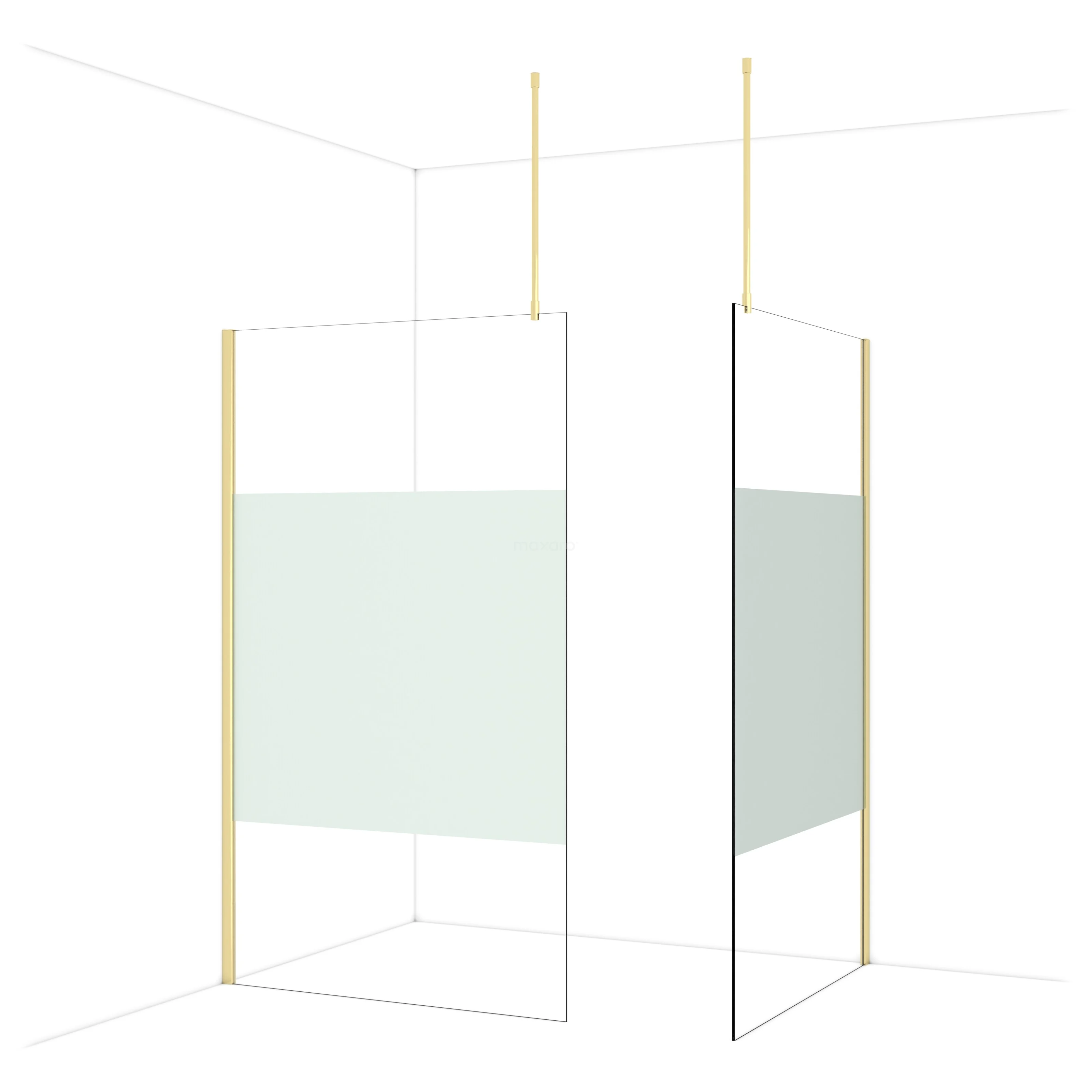 In der stilvollen begehbaren Dusche Diamond mit den Maßen 120x120 cm können Sie jeden Tag herrliche Duschsitzungen genießen. Sie hat ein raffiniertes und luxuriöses Design in glänzendem Hellgold und verfügt über Klarglas mit mattem Streifen für mehr Privatsphäre.