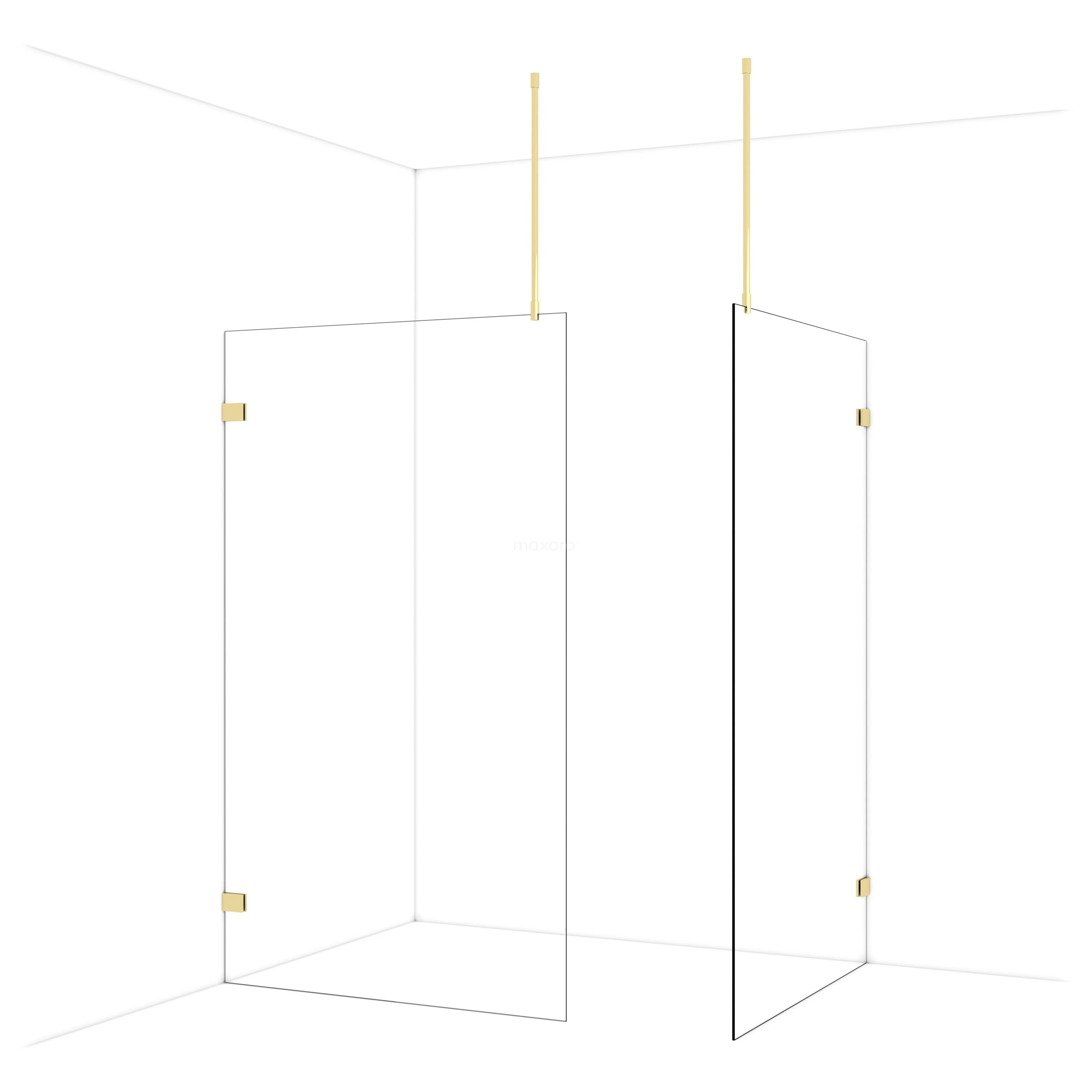 Diamond begehbare Dusche | 120x120 cm Glänzendes Hellgold 2 feste Wände