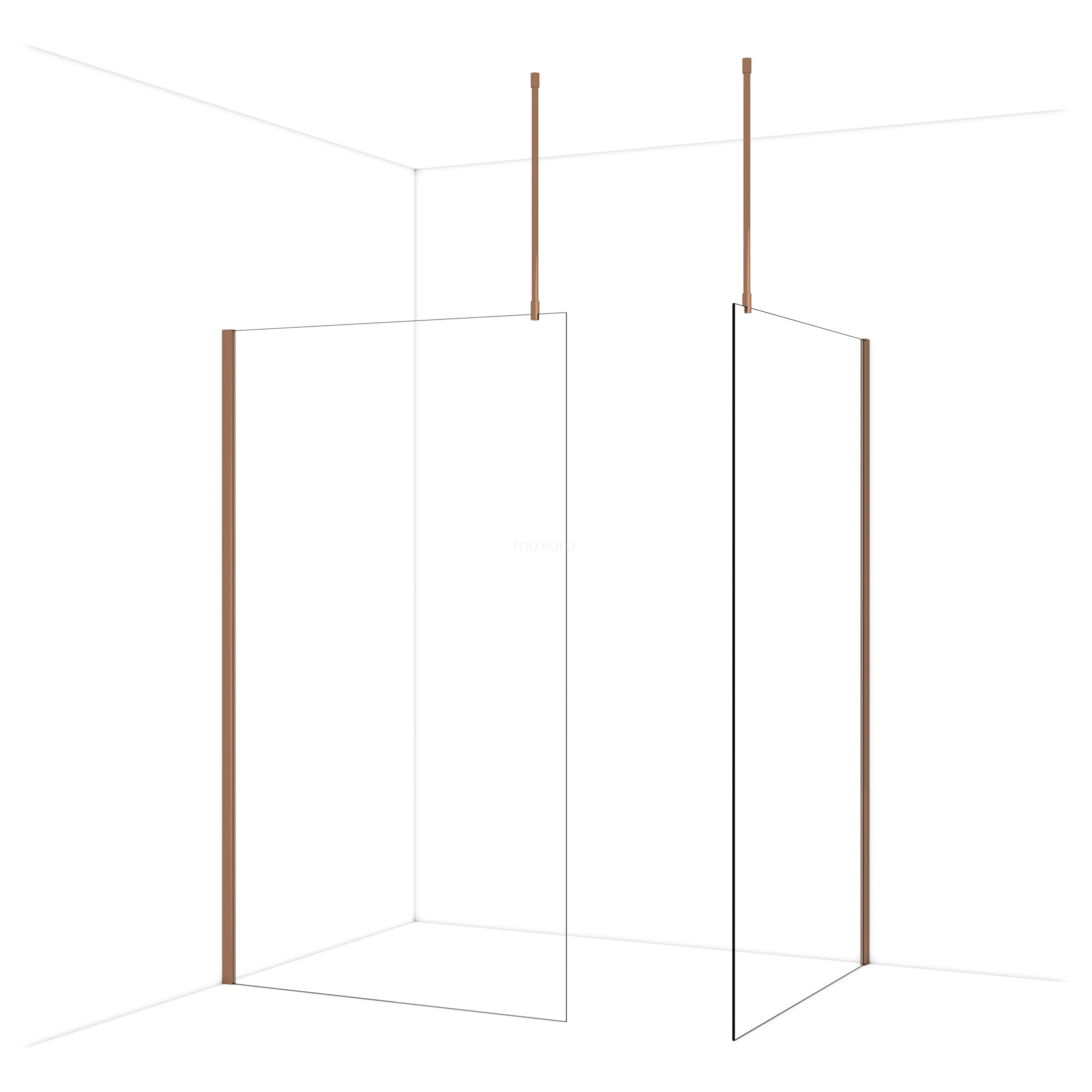 Diamond begehbare Dusche | 120x120 cm Glänzendes Kupfer 2 feste Wände