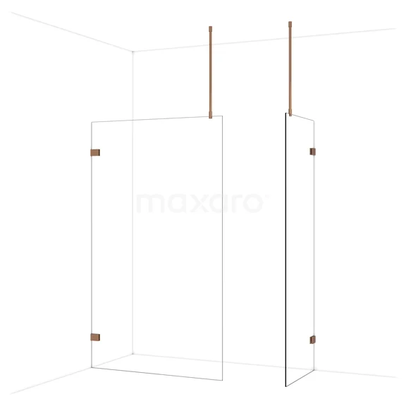 Diamond begehbare Dusche | 120x70 cm Glänzendes Kupfer 2 feste Wände