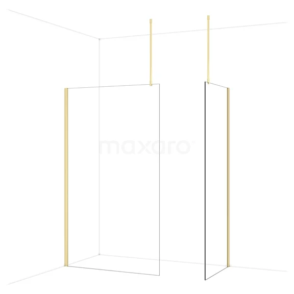 Diamond begehbare Dusche | 120x80 cm Glänzendes Hellgold 2 feste Wände