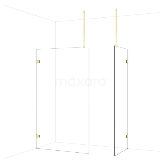 Diamond begehbare Dusche | 120x80 cm Glänzendes Hellgold 2 feste Wände