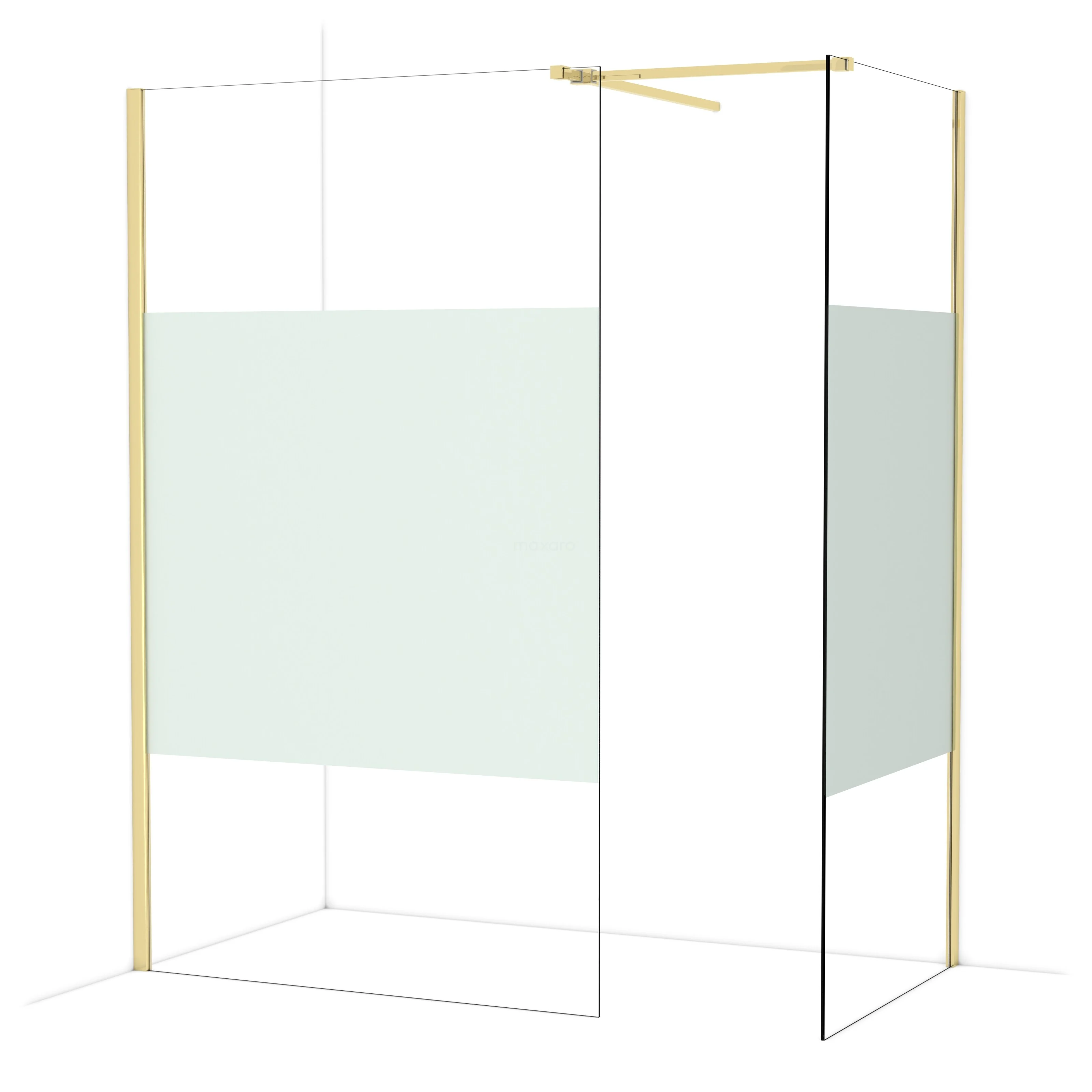 In der stilvollen begehbaren Dusche Diamond mit den Maßen 120x90 cm können Sie jeden Tag herrliche Duschsitzungen genießen. Sie hat ein raffiniertes und luxuriöses Design in glänzendem Hellgold und verfügt über Klarglas mit mattem Streifen für mehr Privatsphäre.