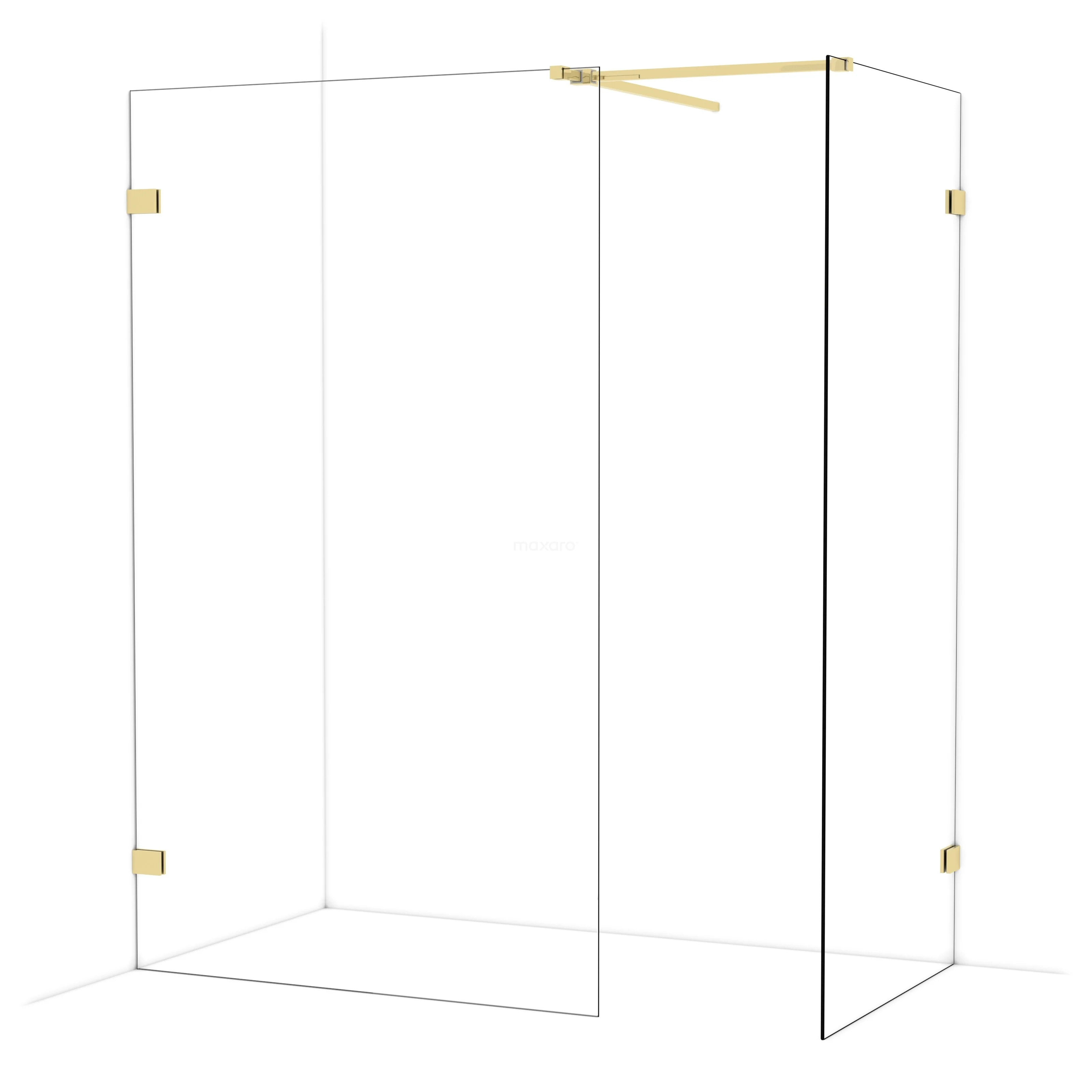 Diamond begehbare Dusche | 120x90 cm Glänzendes Hellgold 2 feste Wände