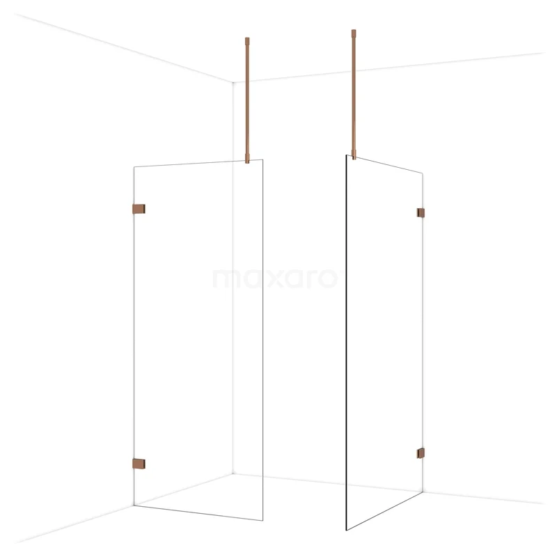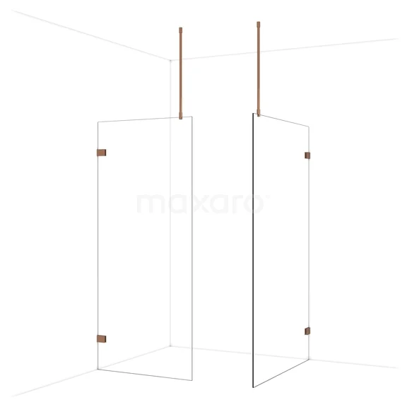 Diamond begehbare Dusche | 120x90 cm Glänzendes Kupfer 2 feste Wände