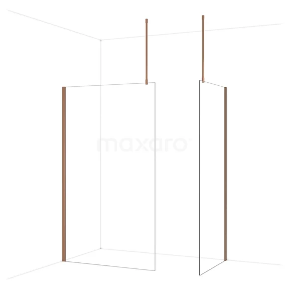 Diamond begehbare Dusche | 120x90 cm Glänzendes Kupfer 2 feste Wände