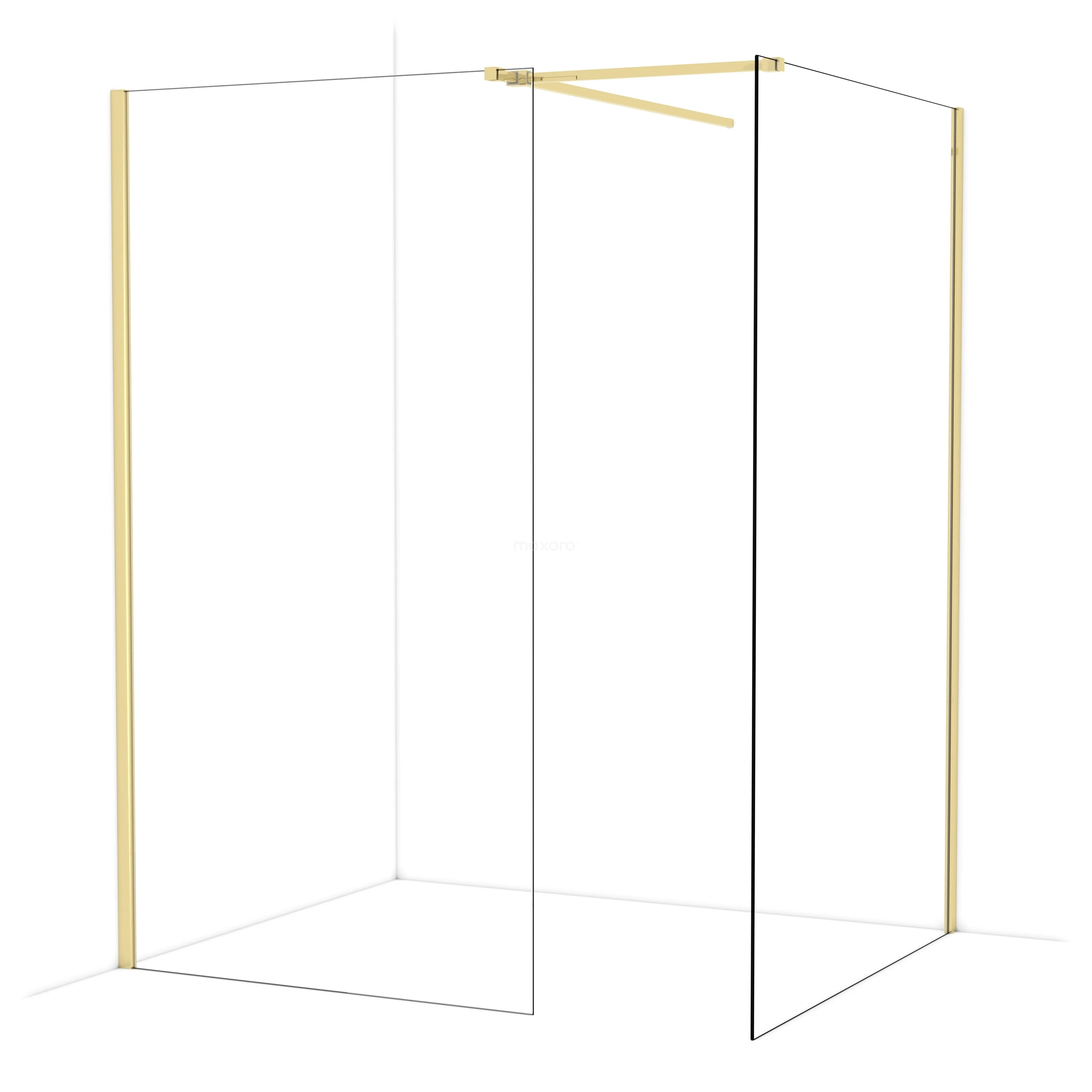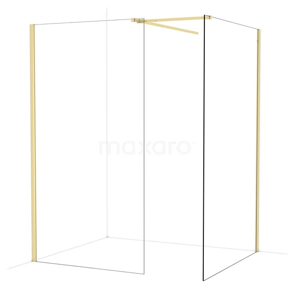 Diamond begehbare Dusche | 130x110 cm Glänzendes Hellgold 2 feste Wände