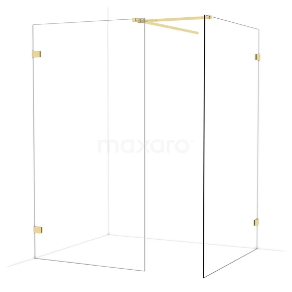 Diamond begehbare Dusche | 130x110 cm Glänzendes Hellgold 2 feste Wände