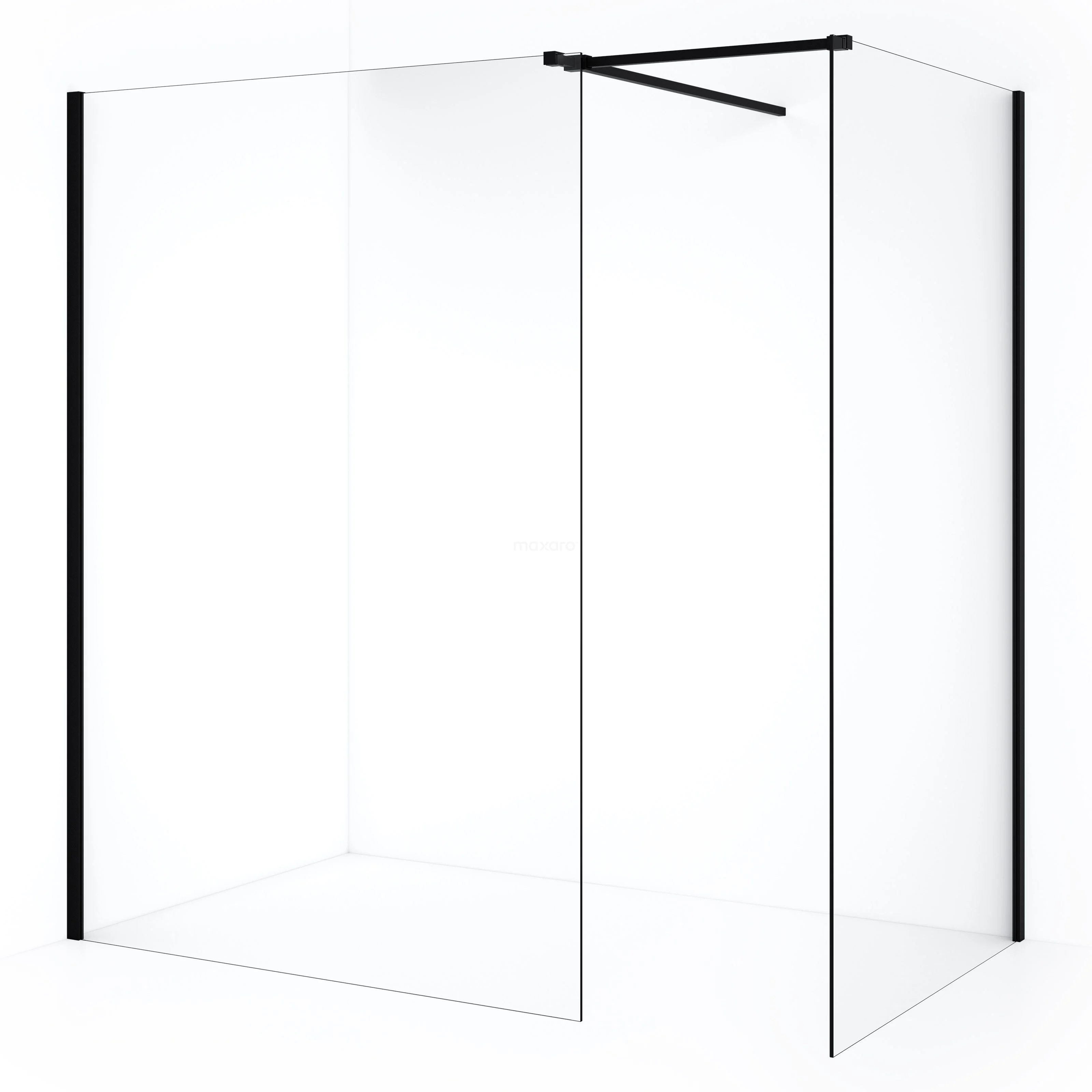 Diamond begehbare Dusche | 130x120 cm Matt Schwarz 2 feste Wände