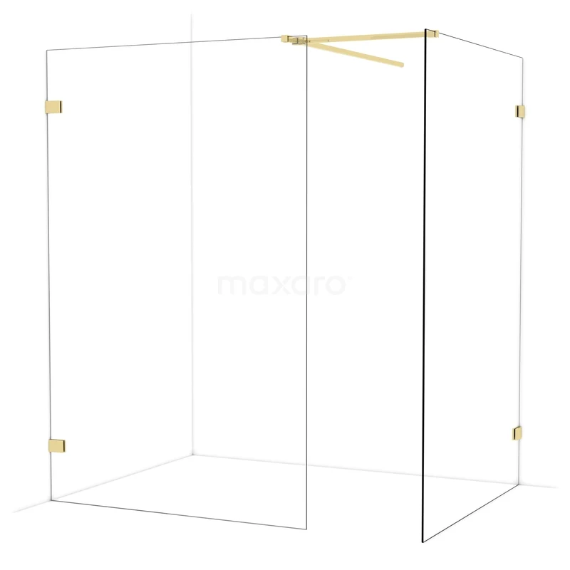Diamond begehbare Dusche | 130x130 cm Glänzendes Hellgold 2 feste Wände