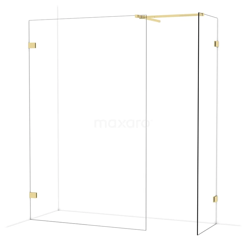 Diamond begehbare Dusche | 130x60 cm Glänzendes Hellgold 2 feste Wände