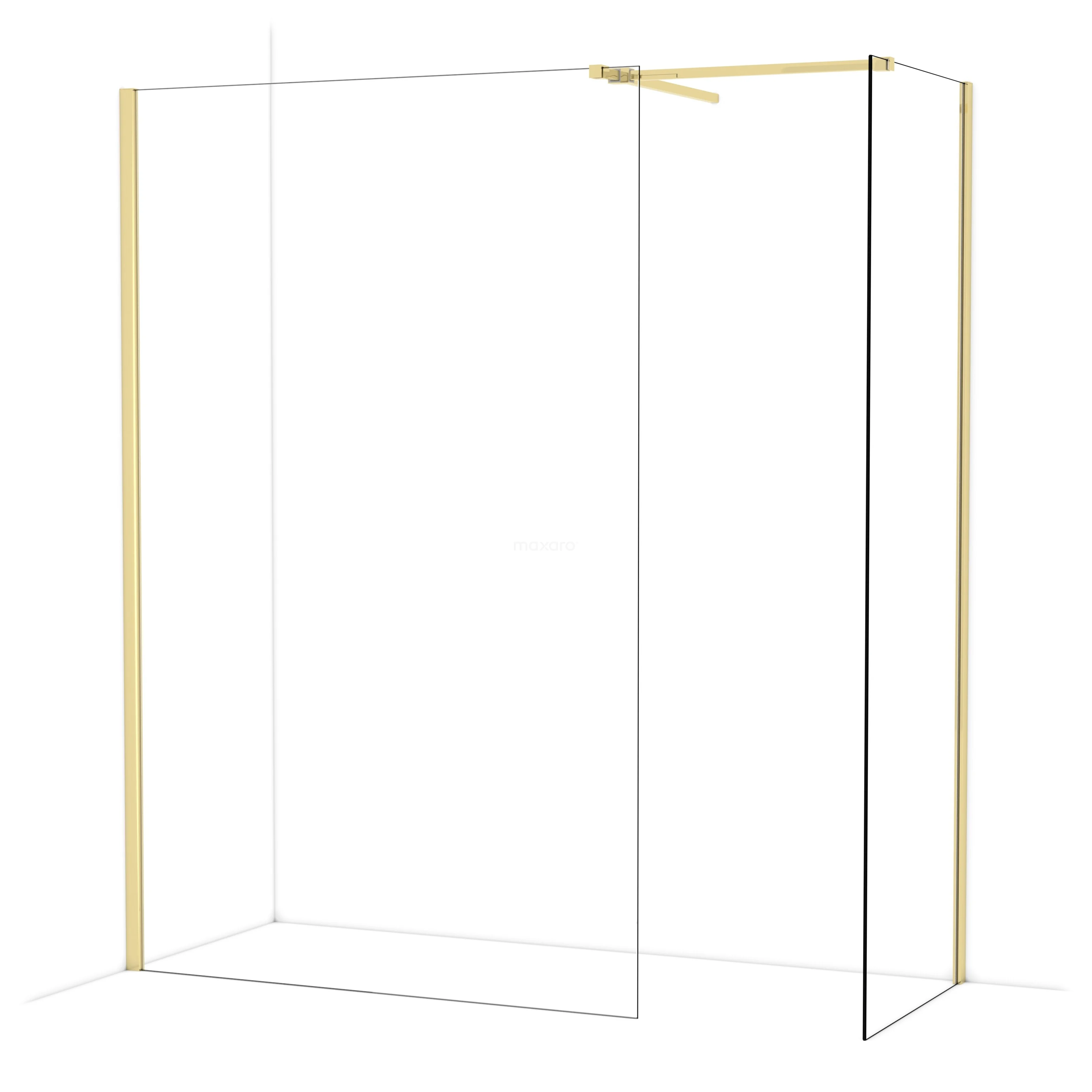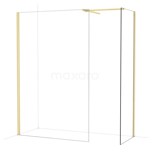 Diamond begehbare Dusche | 130x70 cm Glänzendes Hellgold 2 feste Wände