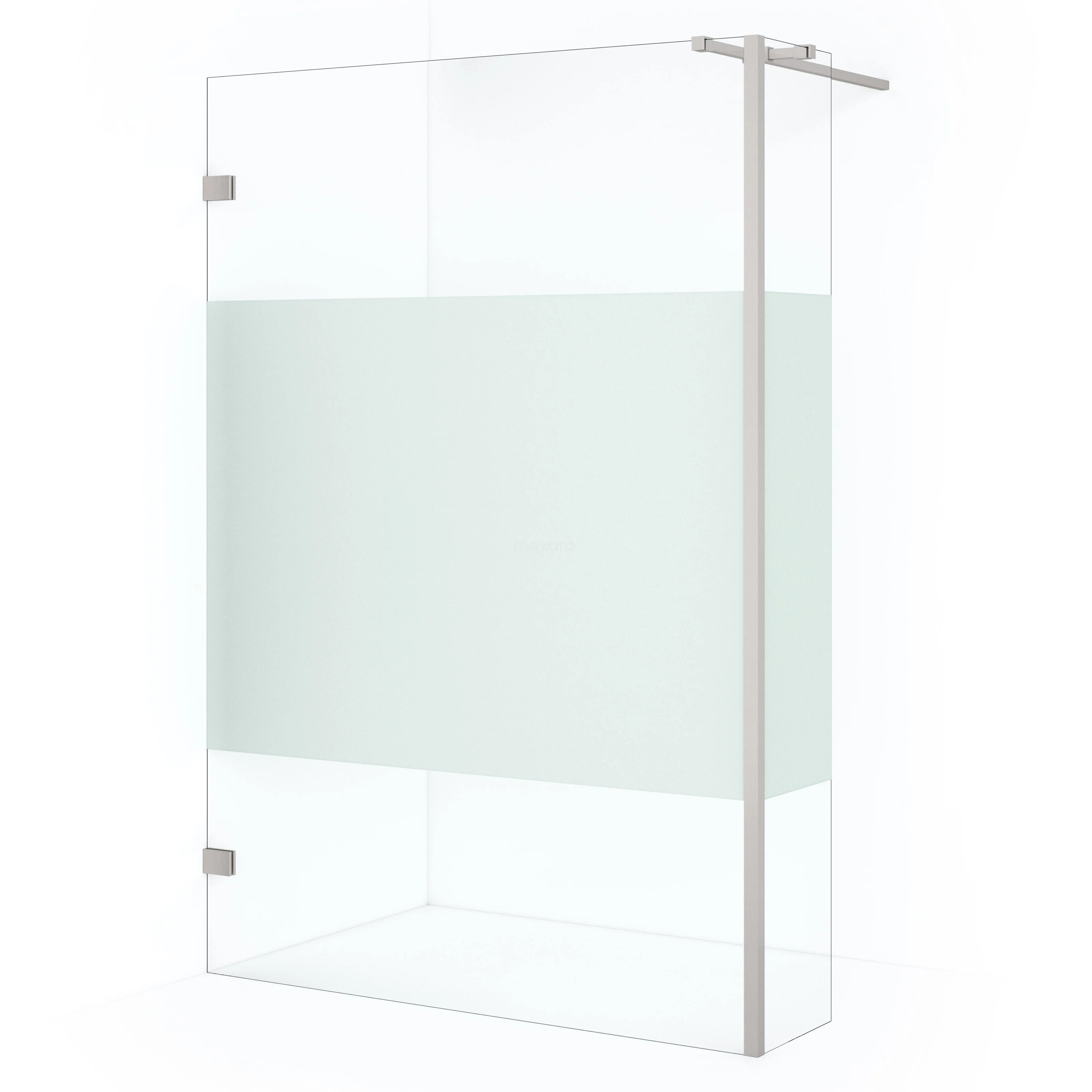 In der stilvollen begehbaren Dusche von Diamond genießen Sie jeden Tag ein herrliches Duschvergnügen. Sie ist aus gebürstetem Edelstahl gefertigt und verfügt über Klarglas mit einem mattierten Streifen für mehr Privatsphäre. Die Dusche ist verstellbar und lässt sich daher leicht anpassen. Die feste Wand hat eine Verstellbarkeit von 136,8 bis 137,1 cm, einschließlich des Glases und des Eckprofils. Die Seitenwand hat eine feste Größe von 28,1 cm, einschließlich des Eckprofils.