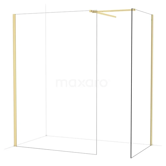 Diamond begehbare Dusche | 140x100 cm Glänzendes Hellgold 2 feste Wände