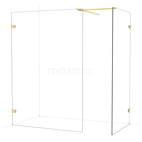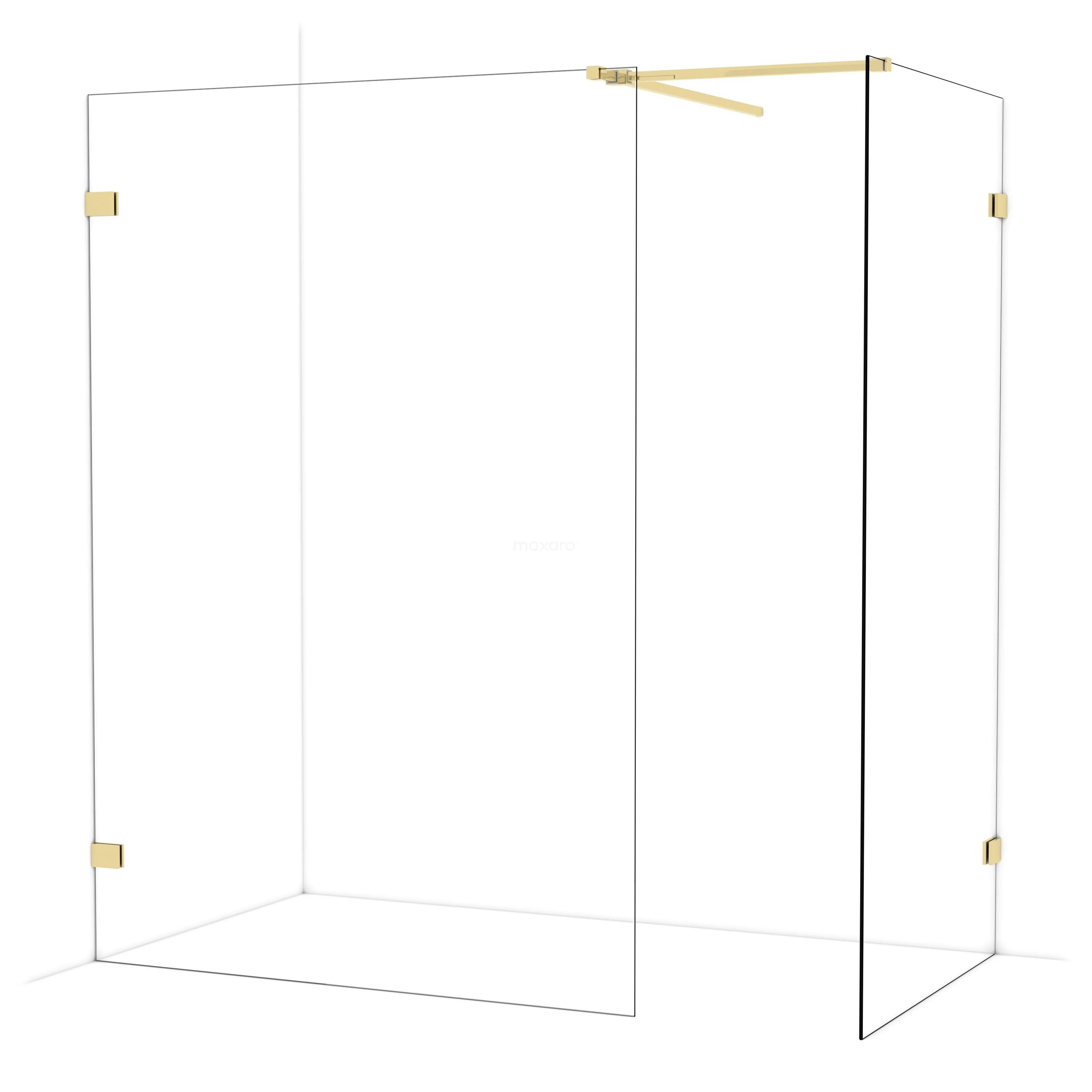 Diamond begehbare Dusche | 140x100 cm Glänzendes Hellgold 2 feste Wände