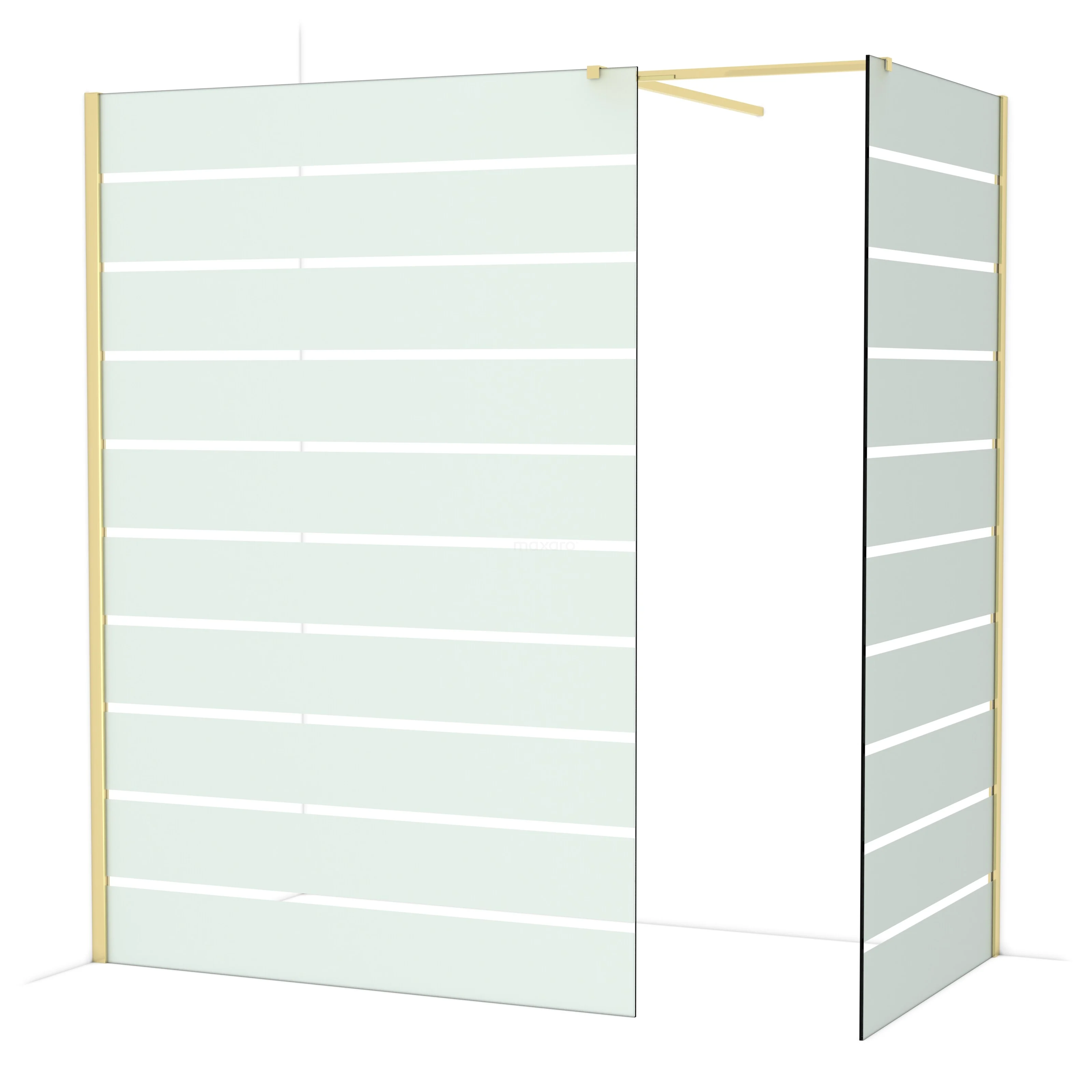 In der stilvollen begehbaren Dusche Diamond mit den Maßen 140x100 cm können Sie jeden Tag herrliche Duschsitzungen genießen. Sie hat ein raffiniertes und luxuriöses Design in glänzendem Hellgold und verfügt über Klarglas mit matten Streifen für mehr Privatsphäre.
