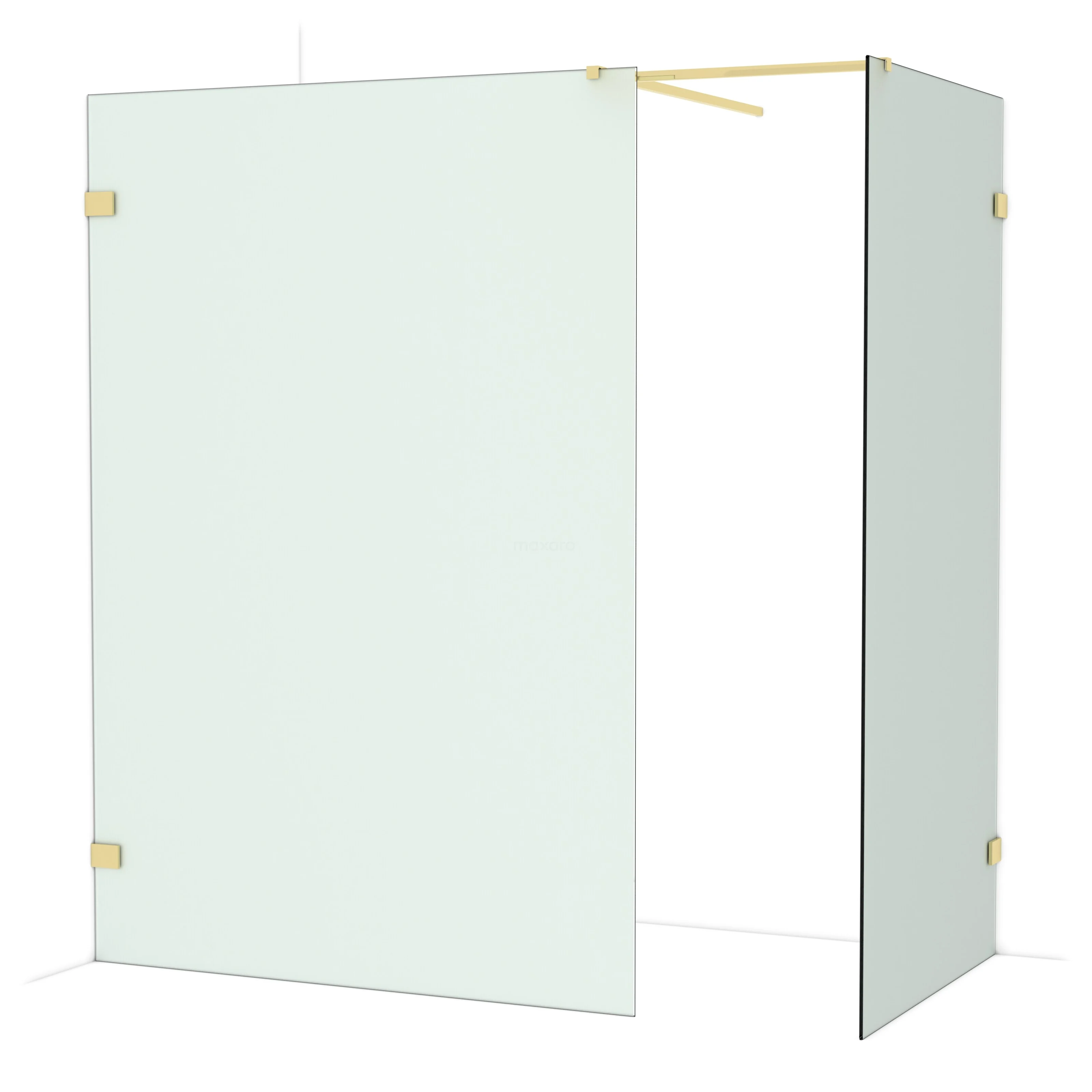 Diamond begehbare Dusche | 140x100 cm Glänzendes Hellgold 2 feste Wände
