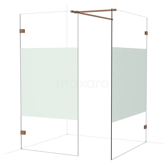Diamond begehbare Dusche | 140x100 cm Glänzendes Kupfer 2 feste Wände