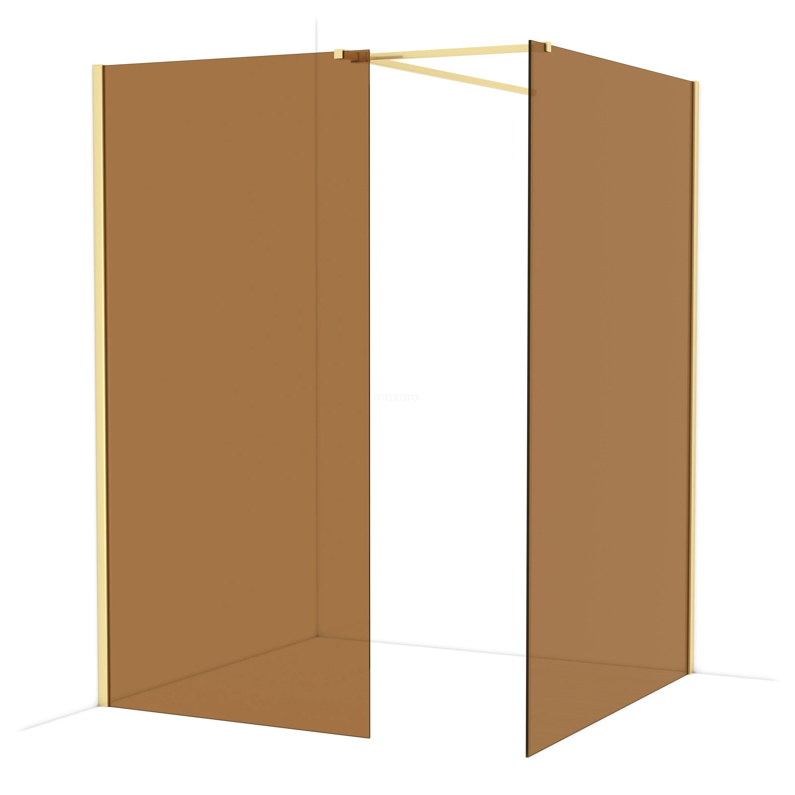 In der stilvollen begehbaren Dusche Diamond mit den Maßen 140x100 cm können Sie jeden Tag herrliche Duschsitzungen genießen. Sie hat eine hellgoldene Oberfläche und ist mit Bronzeglas ausgestattet. Dieses Glasdesign schafft eine warme, luxuriöse Atmosphäre und filtert auf subtile Weise das Licht für mehr Sicherheit im Badezimmer. Die Glaswand kann gespiegelt montiert werden.