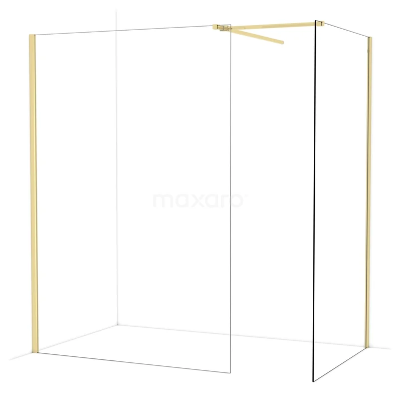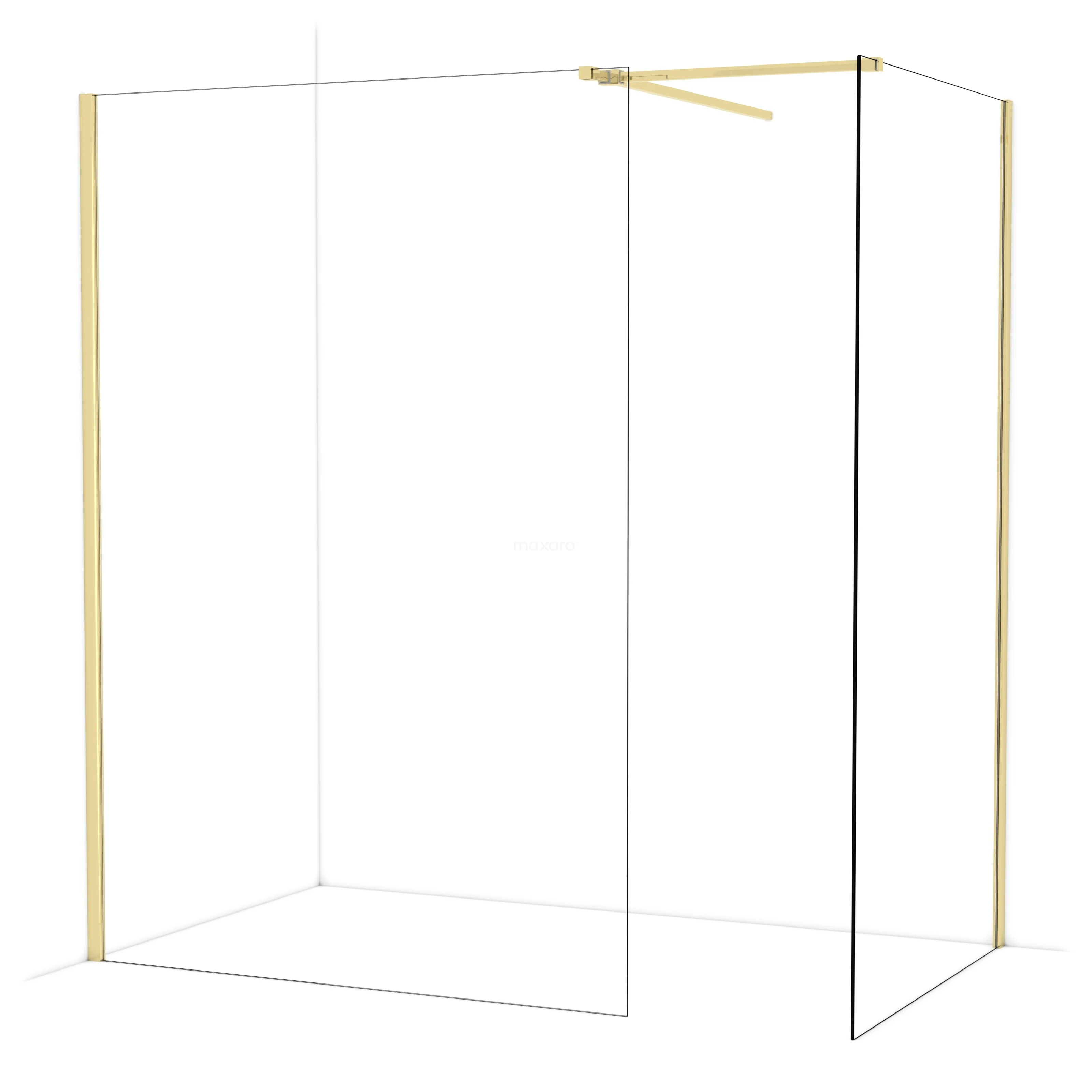 Diamond begehbare Dusche | 140x110 cm Glänzendes Hellgold 2 feste Wände