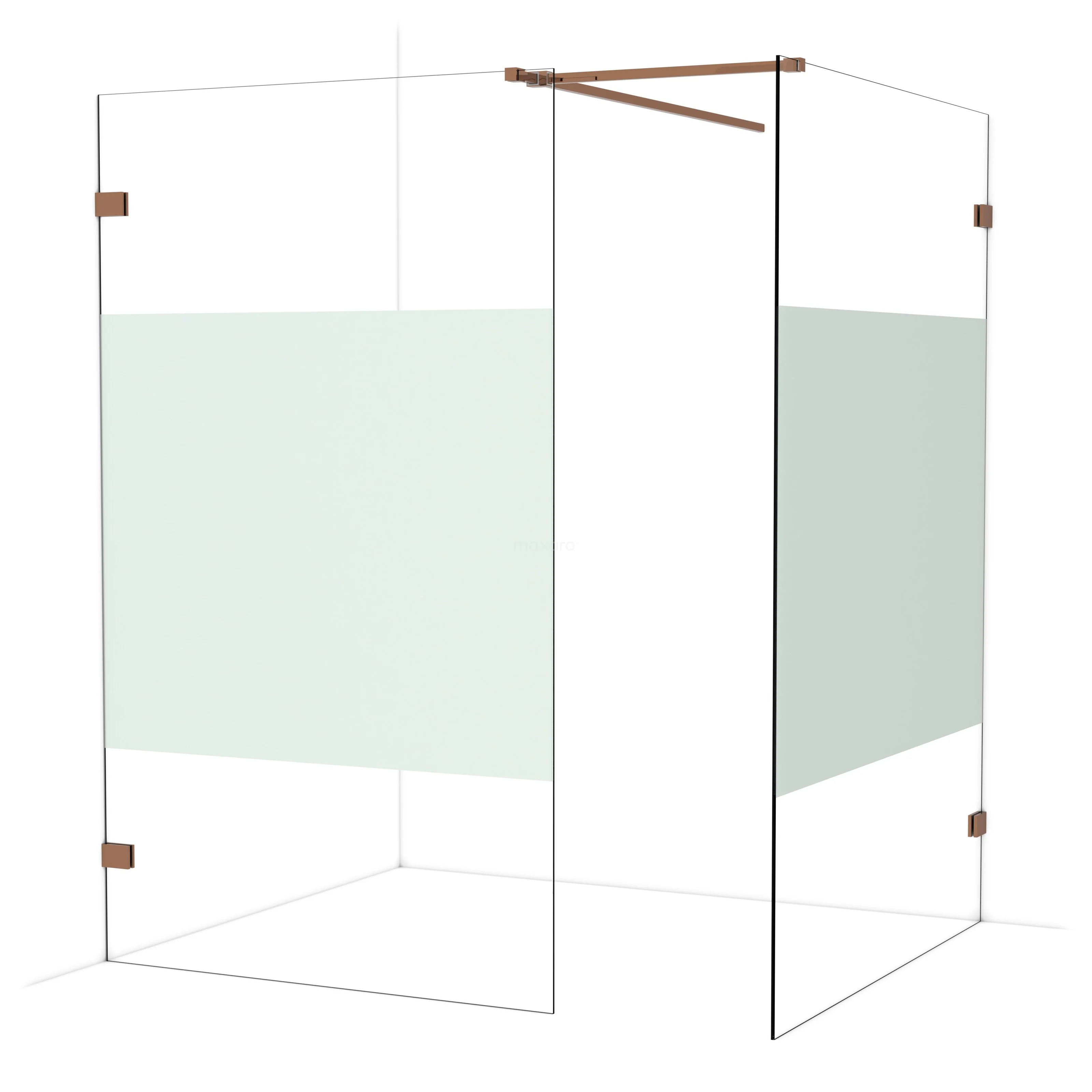 Diamond begehbare Dusche | 140x120 cm Glänzendes Kupfer 2 feste Wände