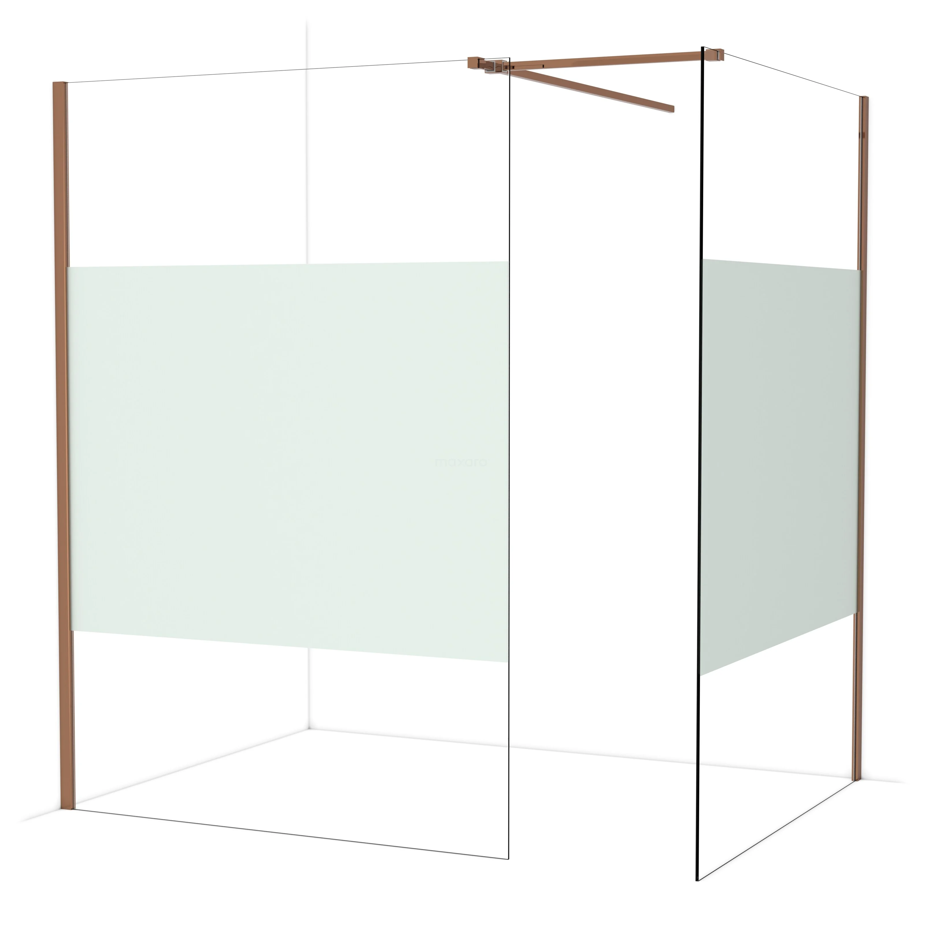 Diamond begehbare Dusche | 140x140 cm Glänzendes Kupfer 2 feste Wände