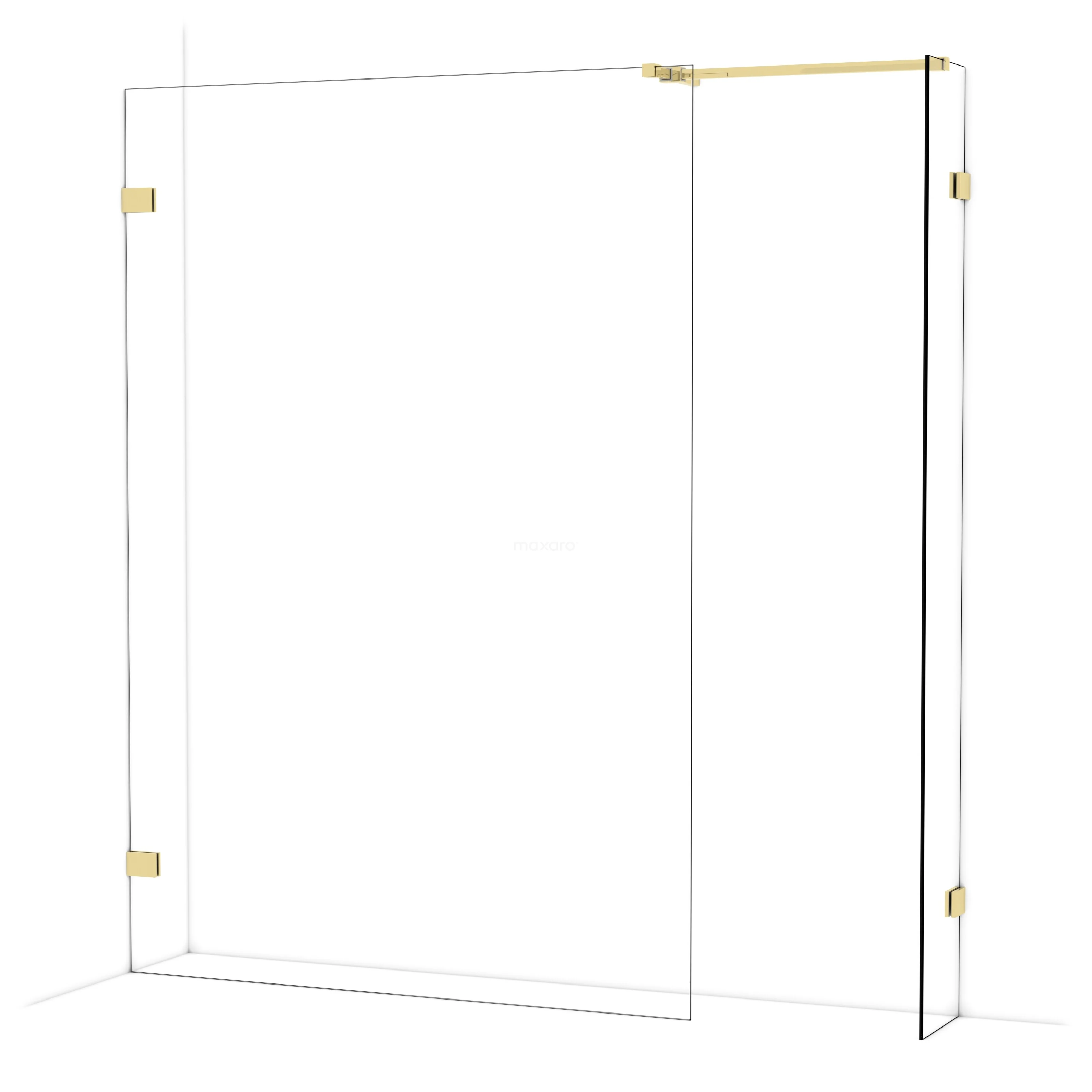 Diamond begehbare Dusche | 140x30 cm Glänzendes Hellgold 2 feste Wände