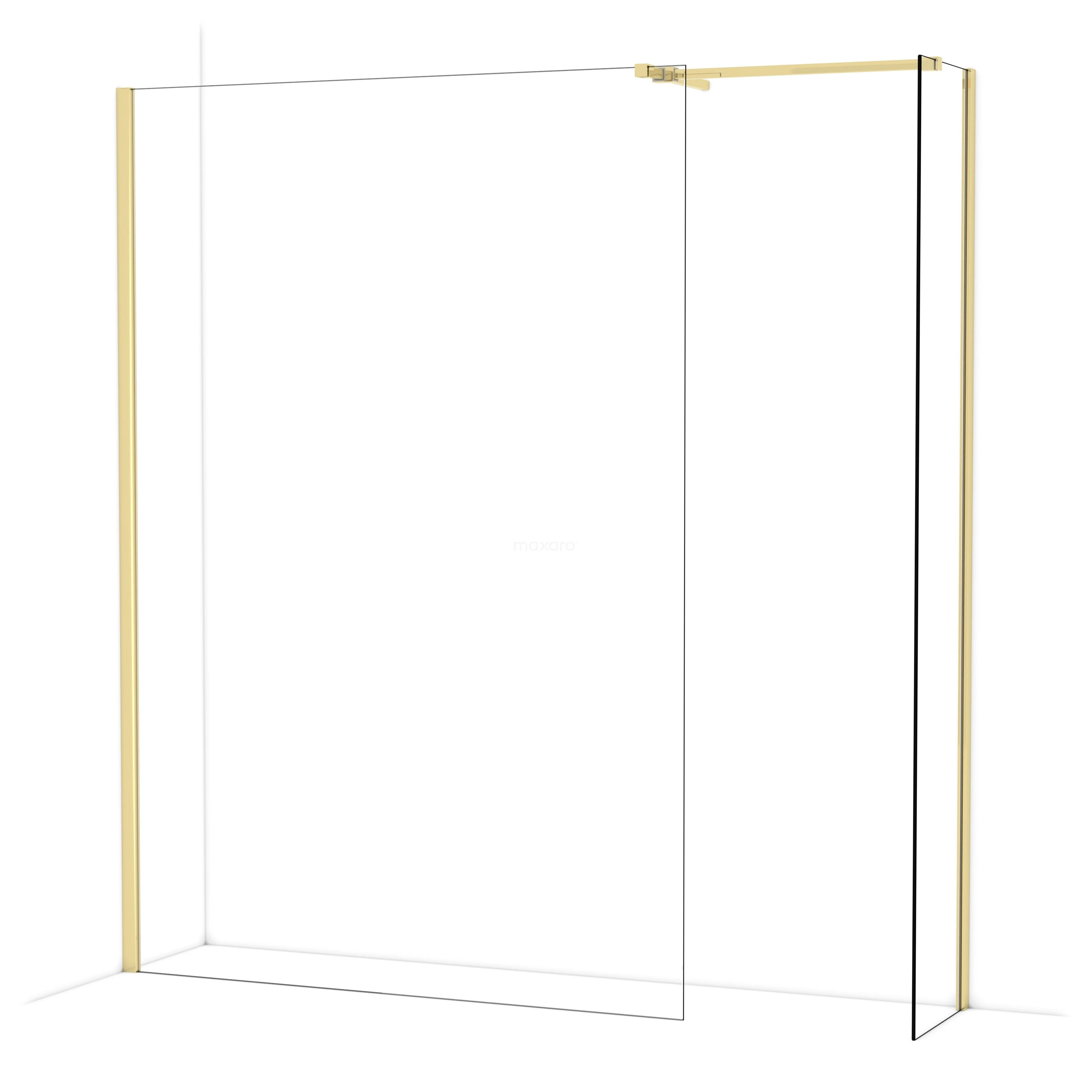 Diamond begehbare Dusche | 140x40 cm Glänzendes Hellgold 2 feste Wände