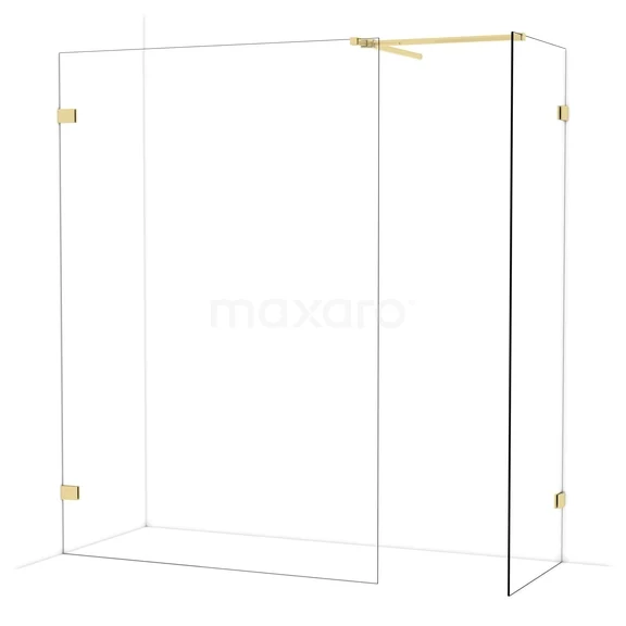 Diamond begehbare Dusche | 140x70 cm Glänzendes Hellgold 2 feste Wände