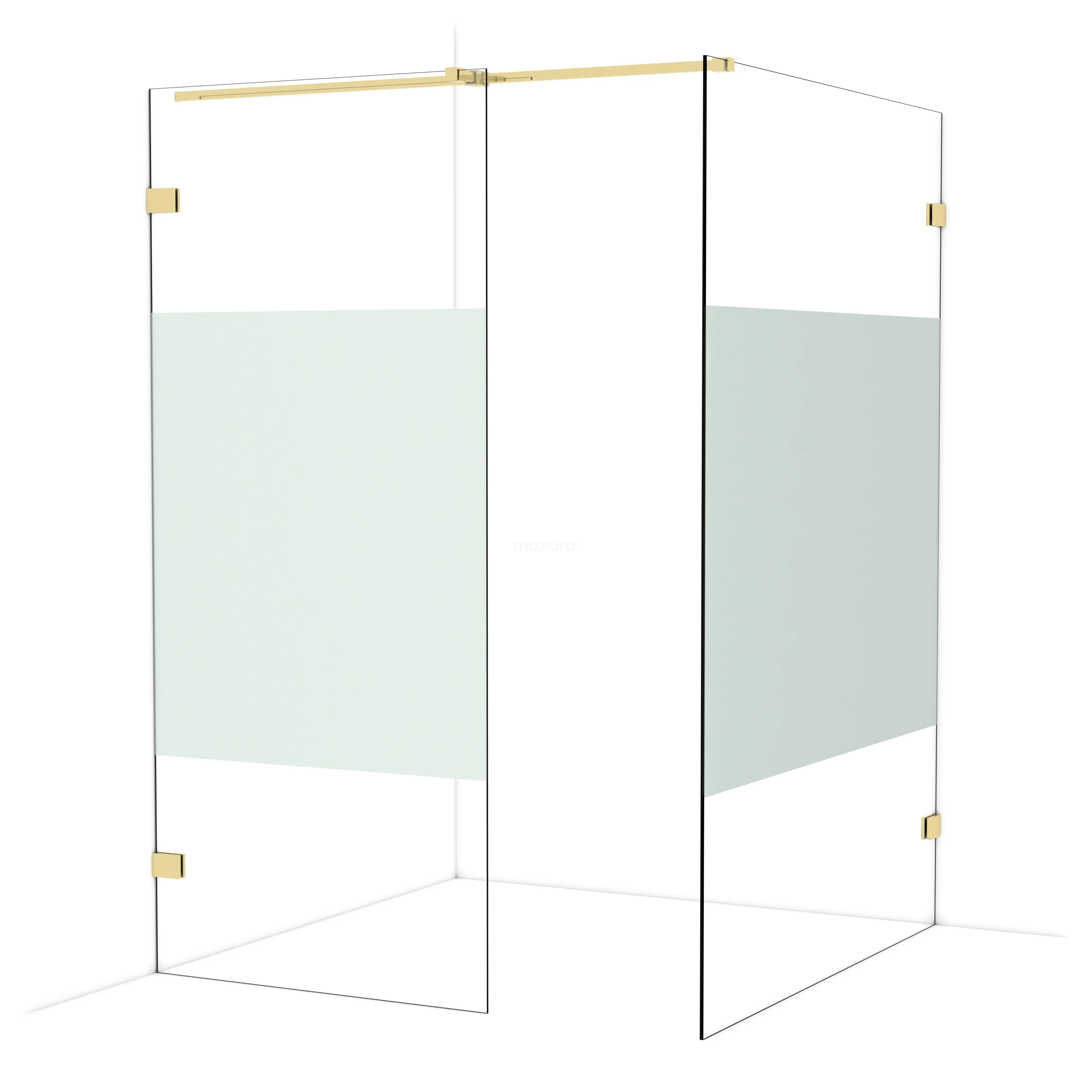 In der stilvollen begehbaren Dusche Diamond mit den Maßen 140x90 cm können Sie jeden Tag herrliche Duschsitzungen genießen. Sie hat ein raffiniertes und luxuriöses Design in glänzendem Hellgold und verfügt über Klarglas mit mattem Streifen für mehr Privatsphäre.