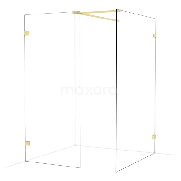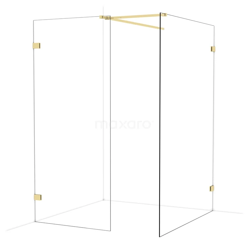 Diamond begehbare Dusche | 140x90 cm Glänzendes Hellgold 2 feste Wände
