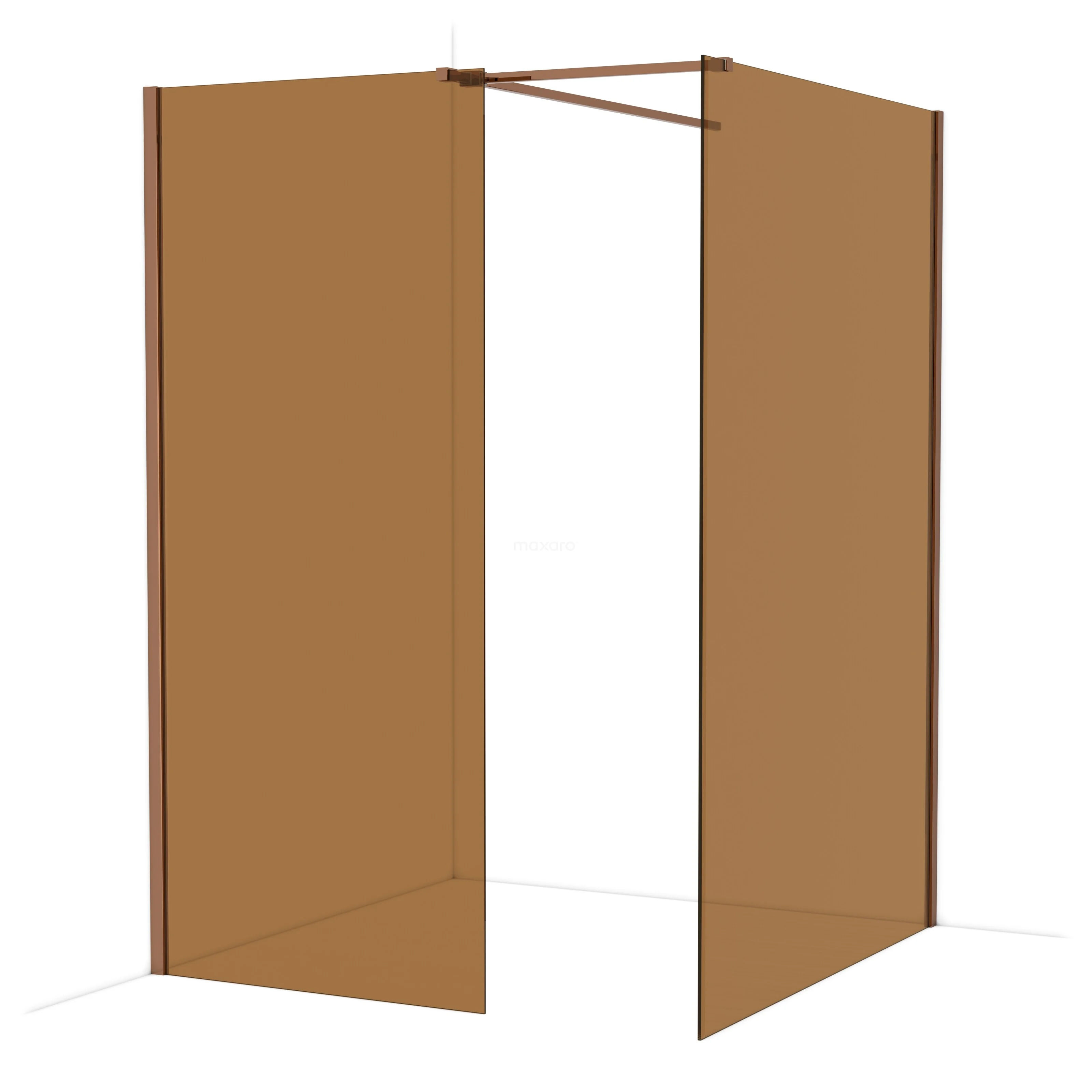 Diamond begehbare Dusche | 140x90 cm Glänzendes Kupfer 2 feste Wände