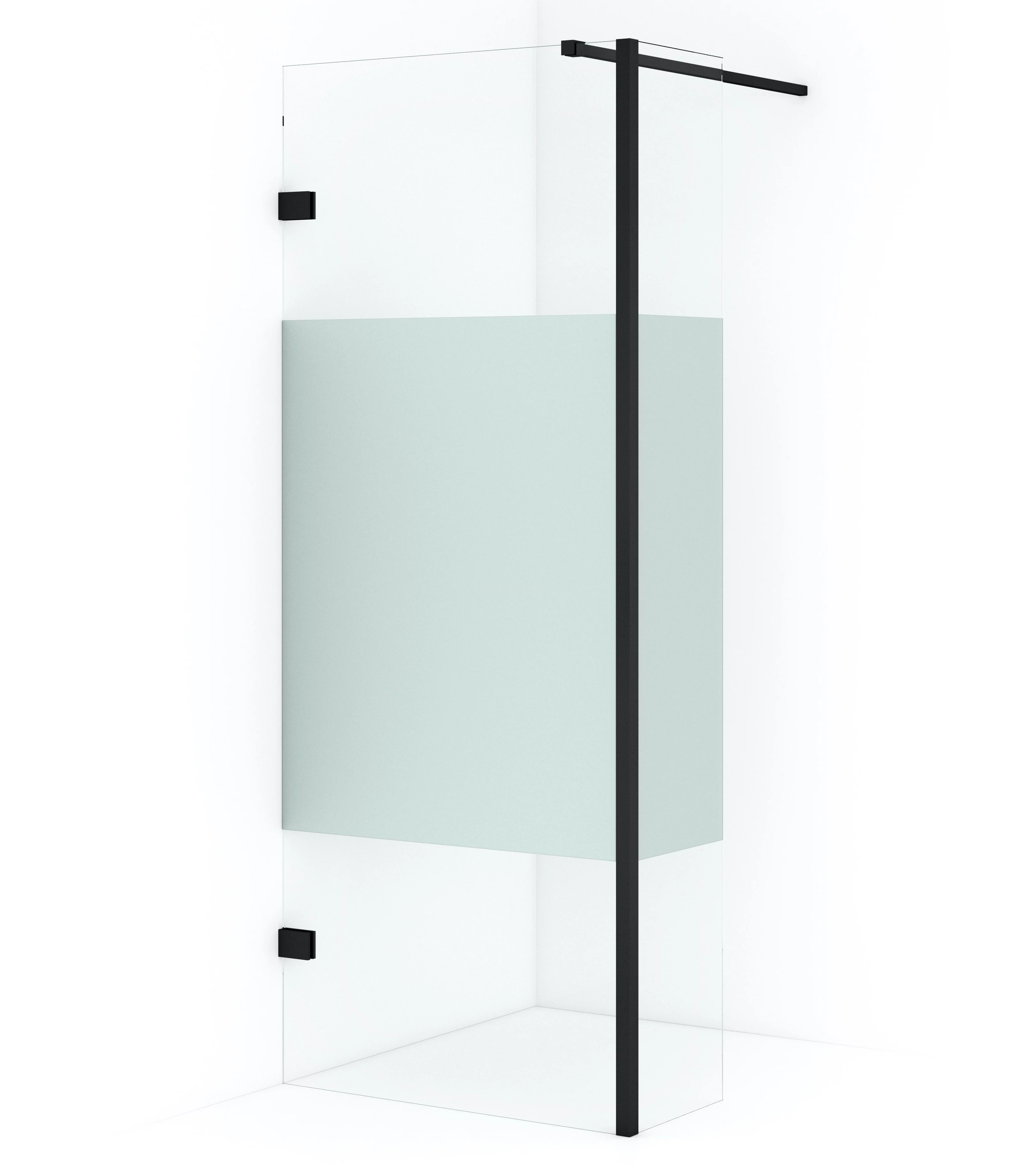 In der stilvollen begehbaren Dusche Diamond genießen Sie jeden Tag wunderbare Duschsitzungen. Sie hat ein cooles, mattschwarzes Finish und verfügt über Klarglas mit einem matten Streifen für mehr Privatsphäre. Die Dusche ist verstellbar und lässt sich daher leicht anpassen. Die feste Wand hat eine Verstellbarkeit von 76,8 bis 77,1 cm, einschließlich des Glases und des Eckprofils. Die Seitenwand hat eine feste Größe von 28,1 cm, einschließlich des Eckprofils.