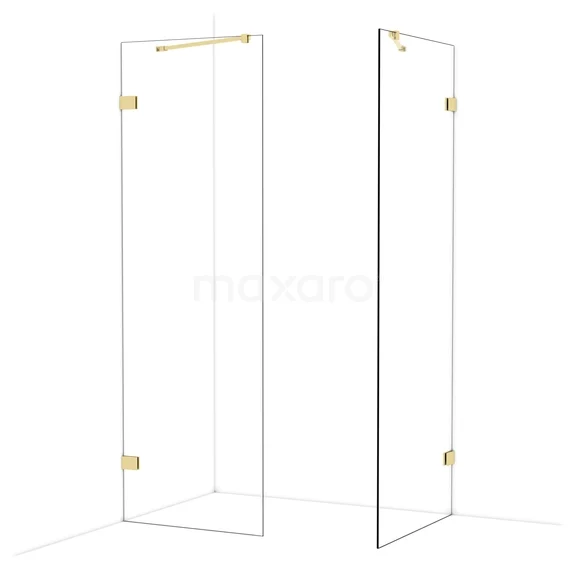 Diamond begehbare Dusche | 80x70 cm Glänzendes Hellgold 2 feste Wände